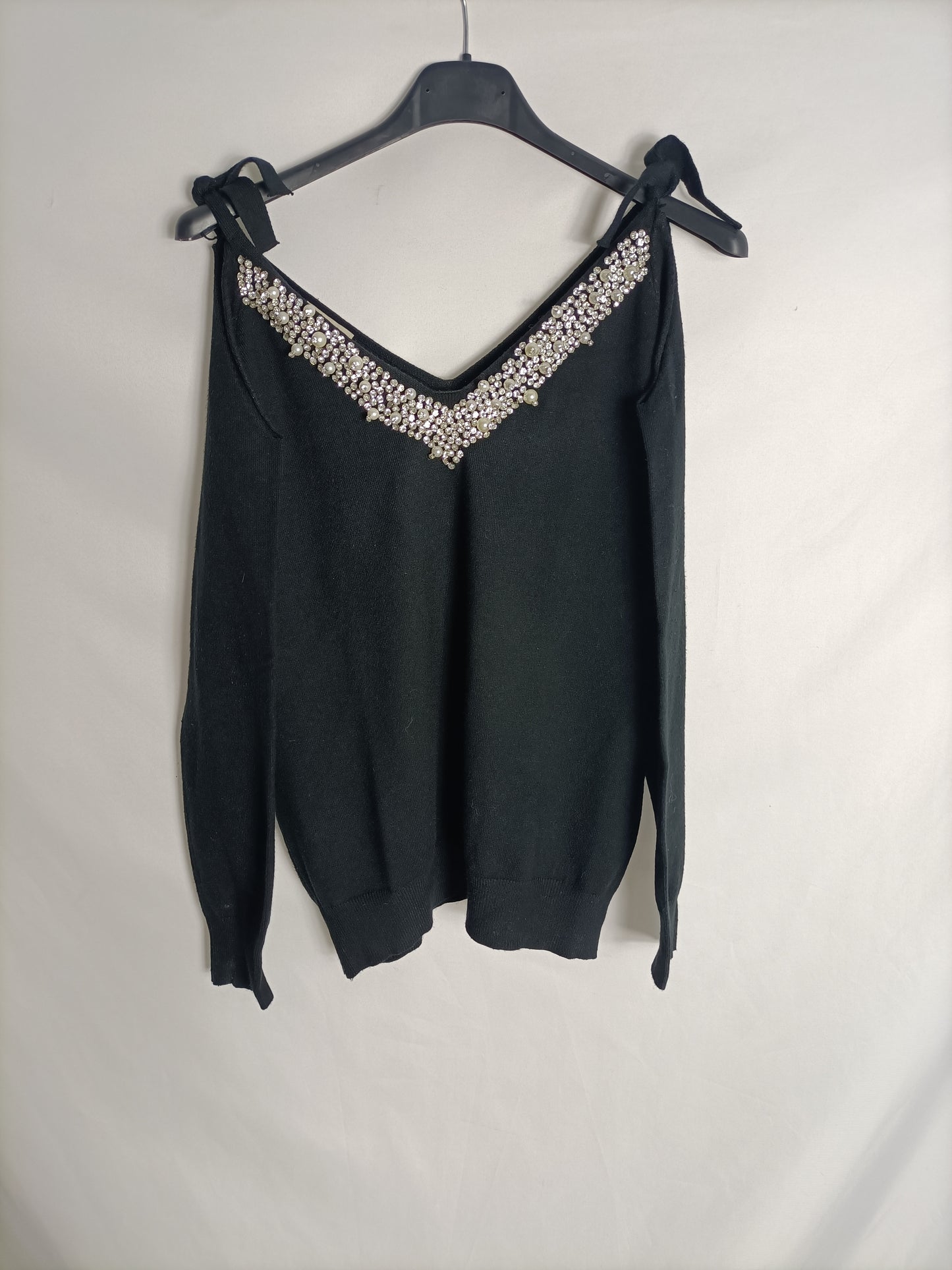 TERIA YABAR. Jersey negro pedrería TU(S)
