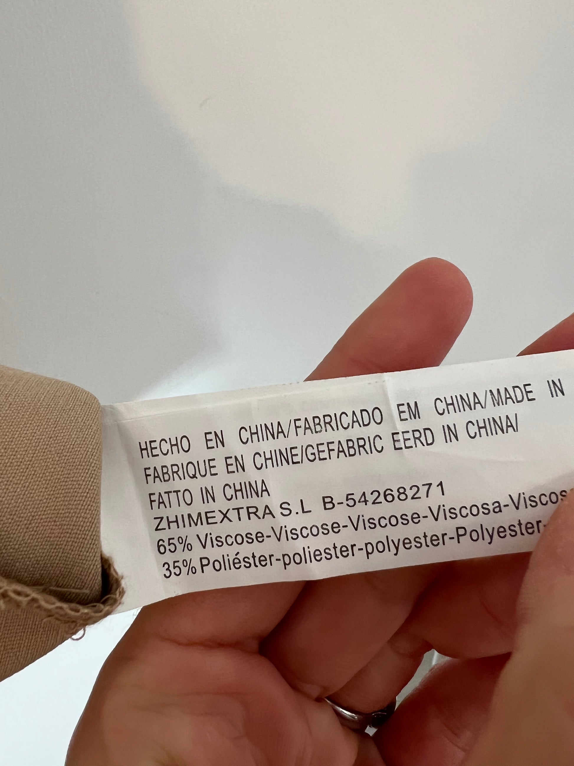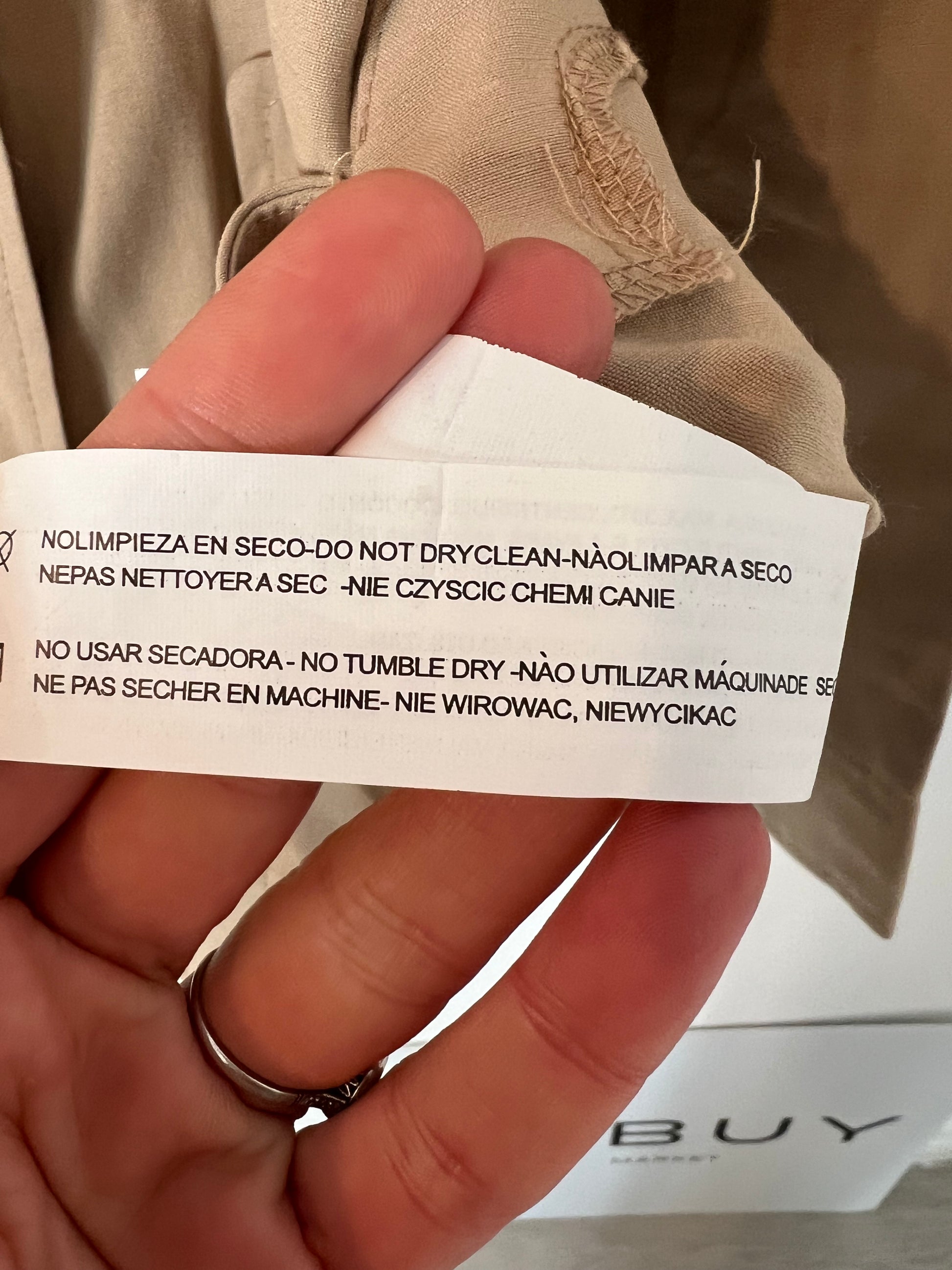 Chaqueta beige estilo gabardina. Espalda 50cm, largo 61cm