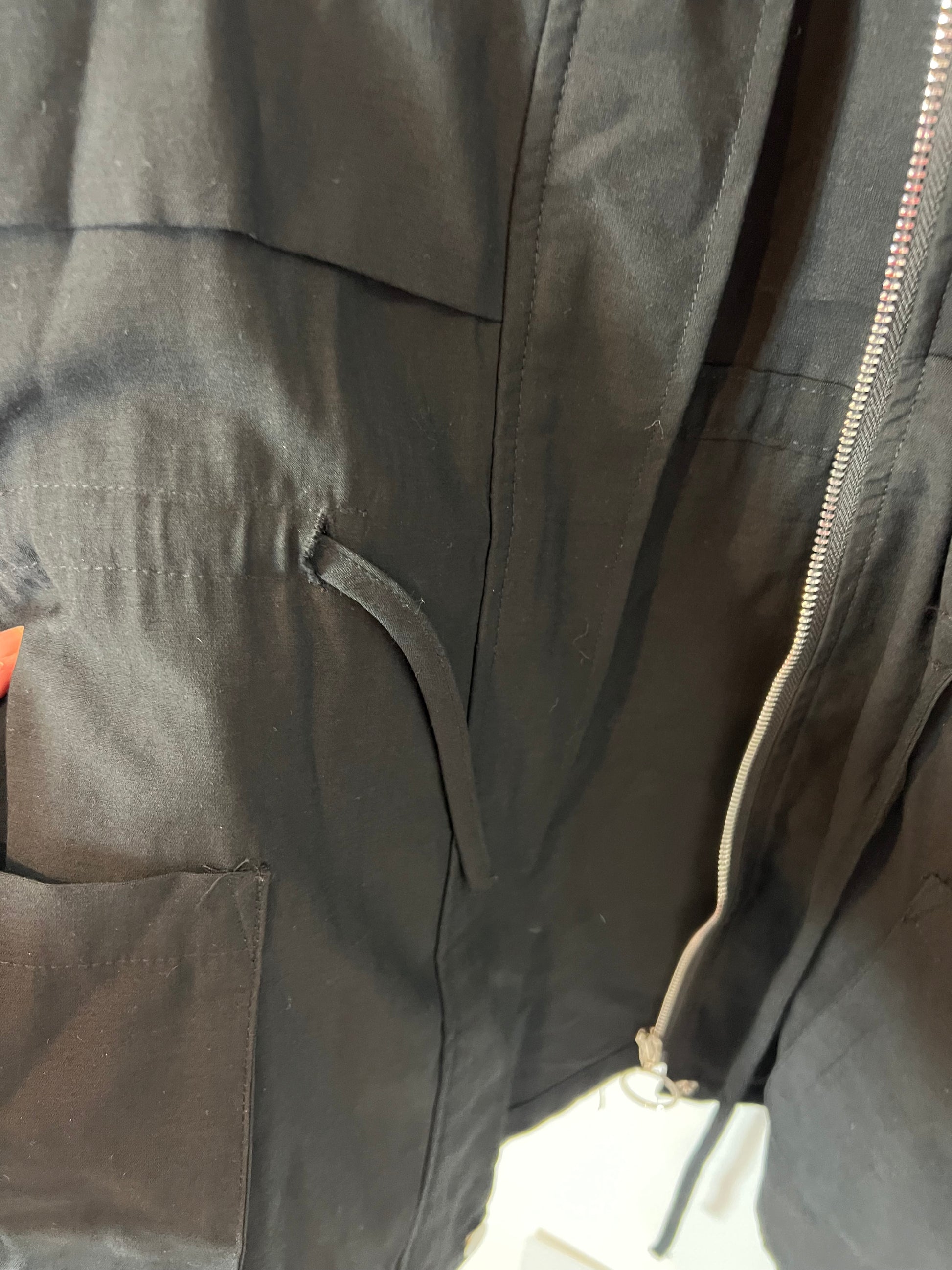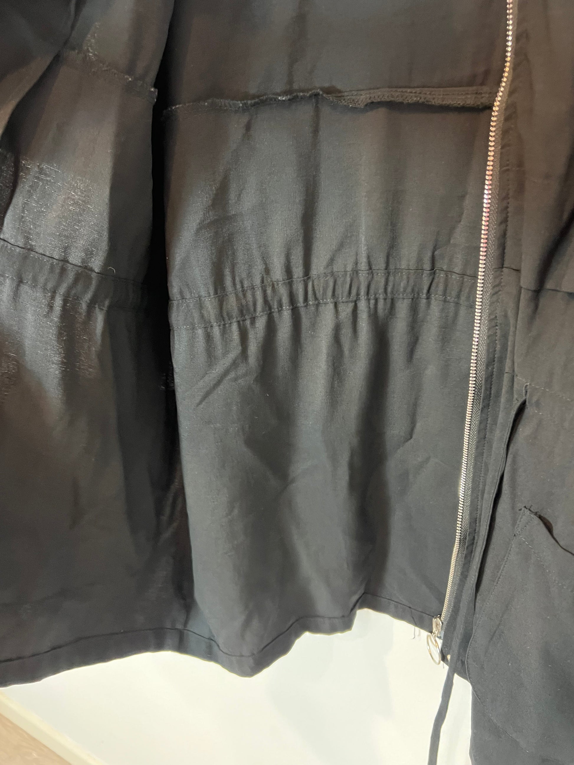 NUEVO CON ETIQUETA. parka negra fluida y fina con cremallera y ajustable en la cintura. De sisa a sisa 57 cm Largo 67 cm