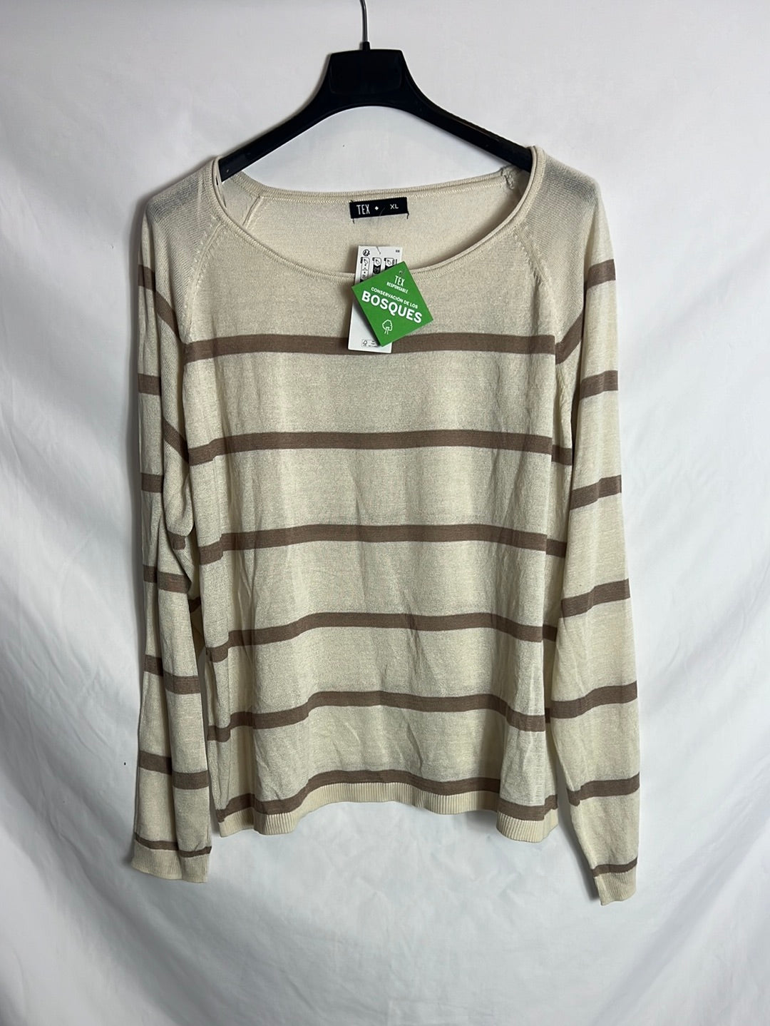 TEX. Jersey fino beige rayas. T L