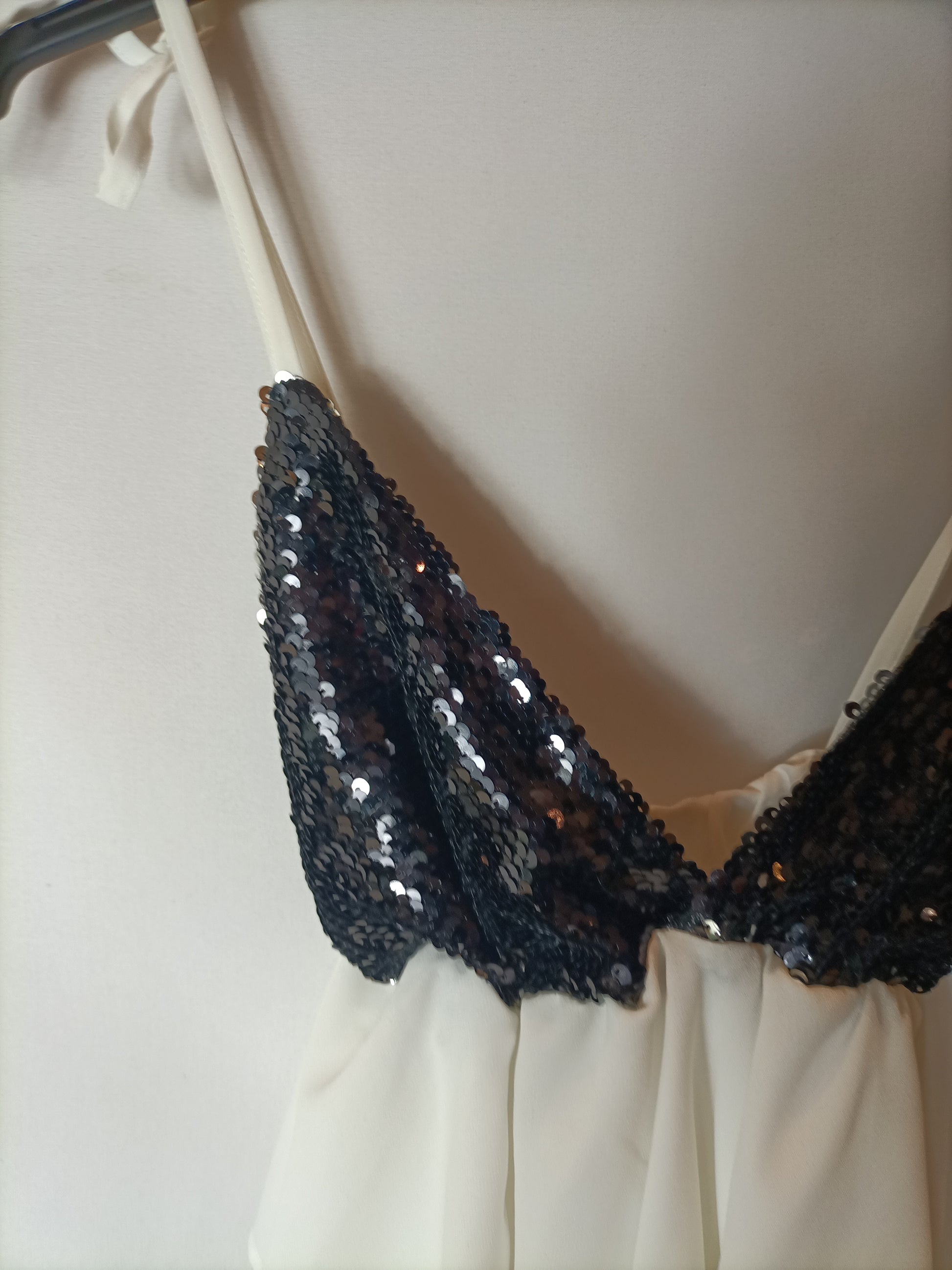 THE ARE. Top blanco lentejuelas negras. T XS/S