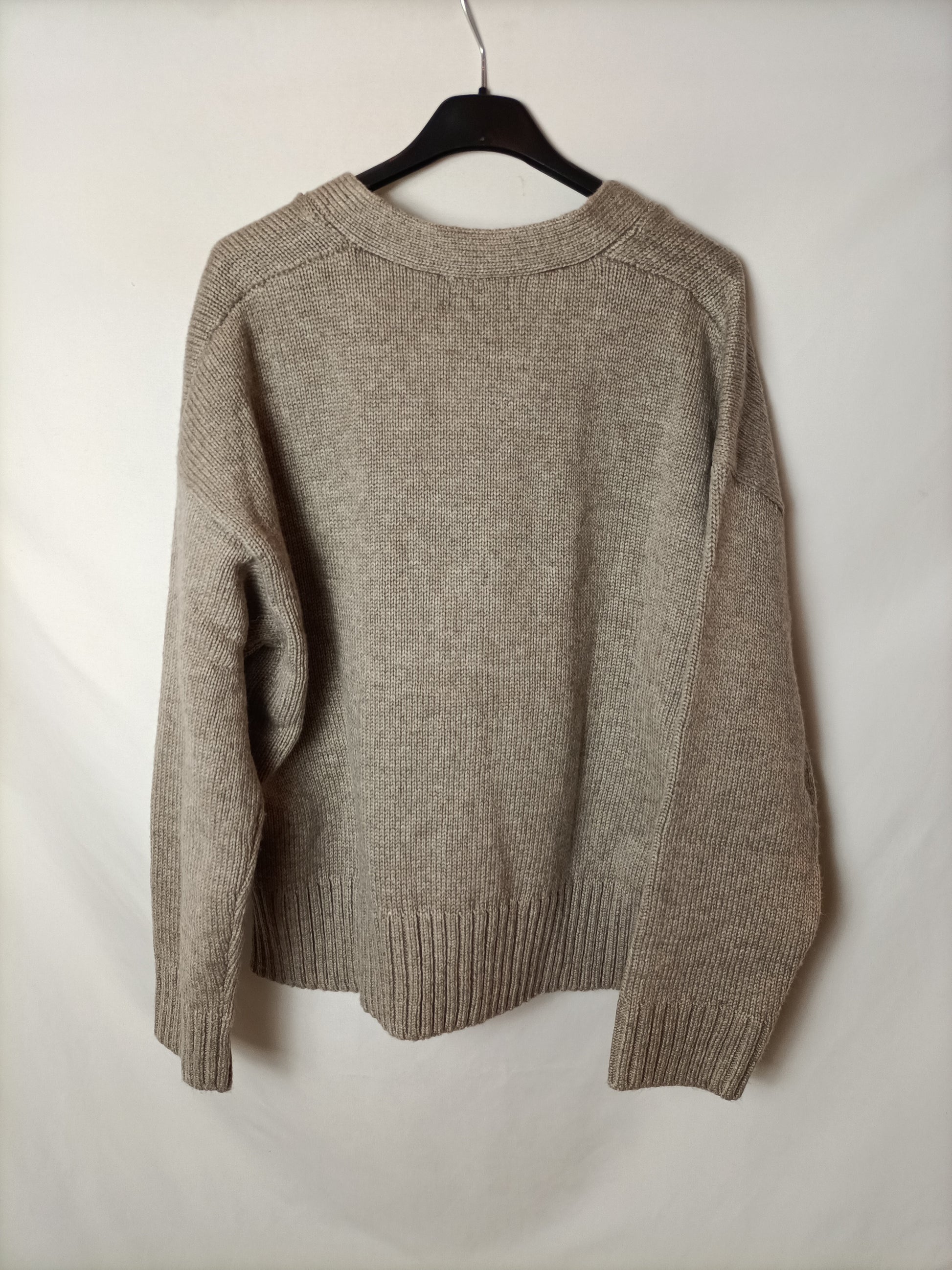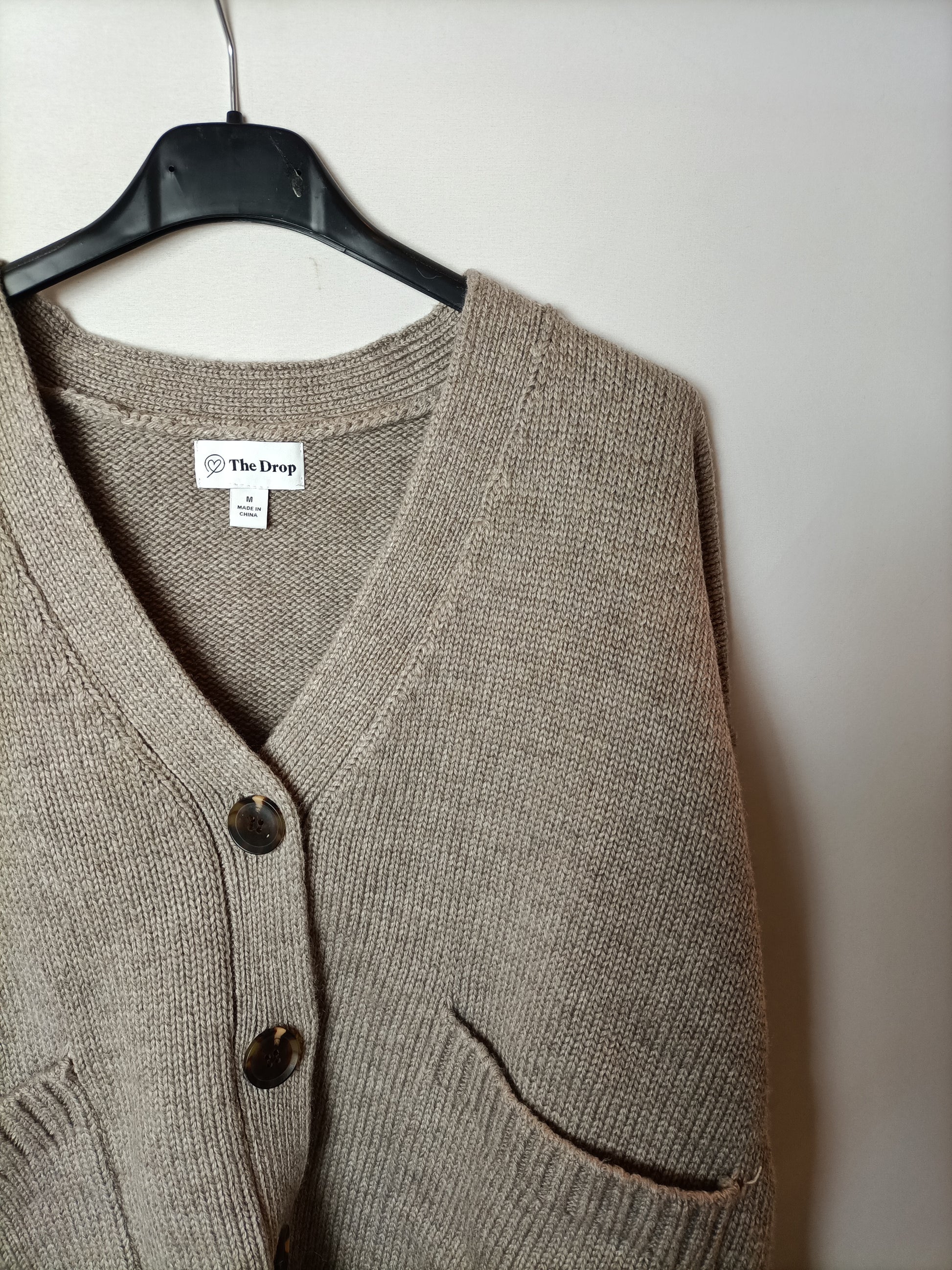 Jersey estilo cárdigan abotonado. total look con pantalón. largo 61cm