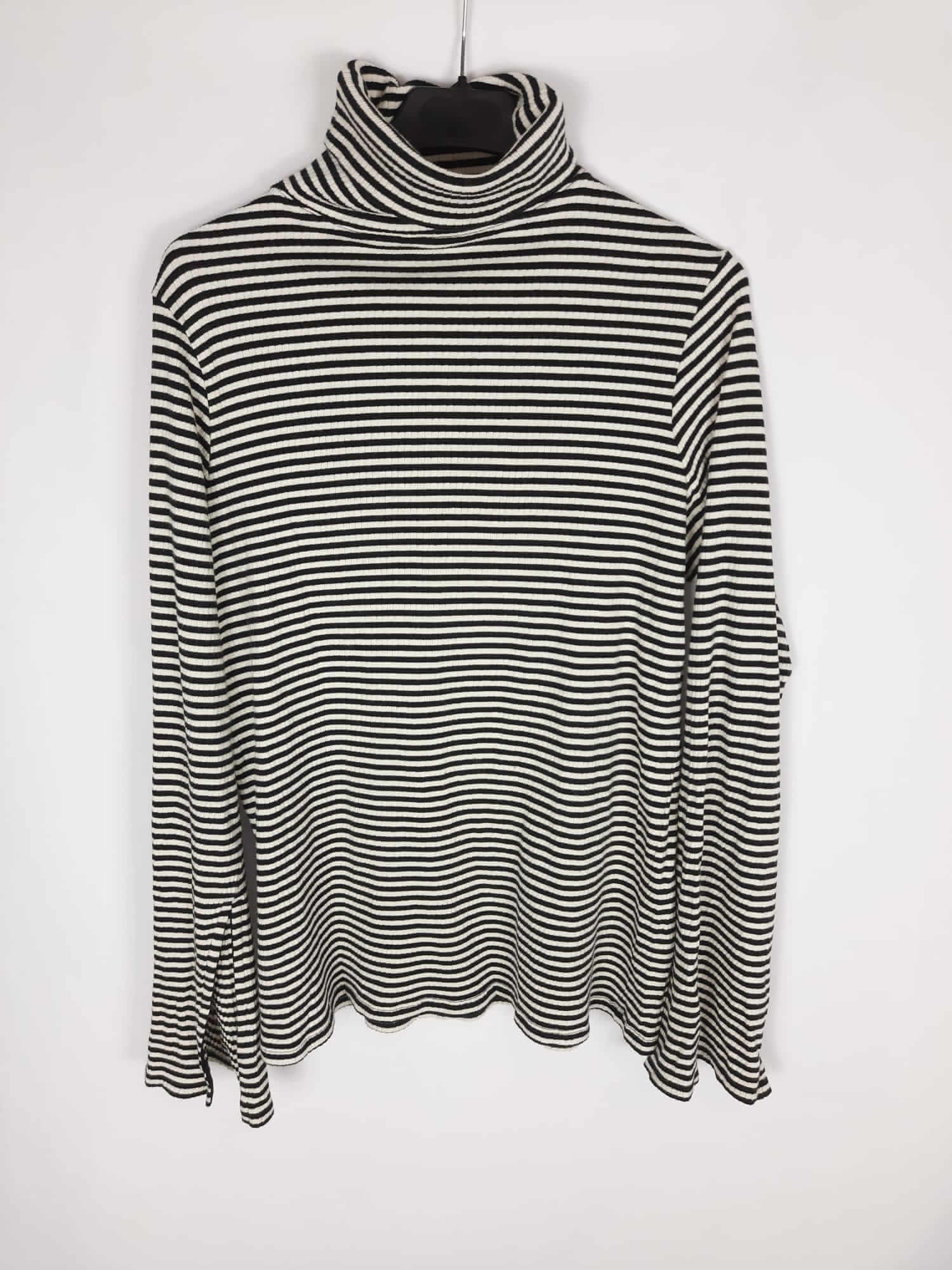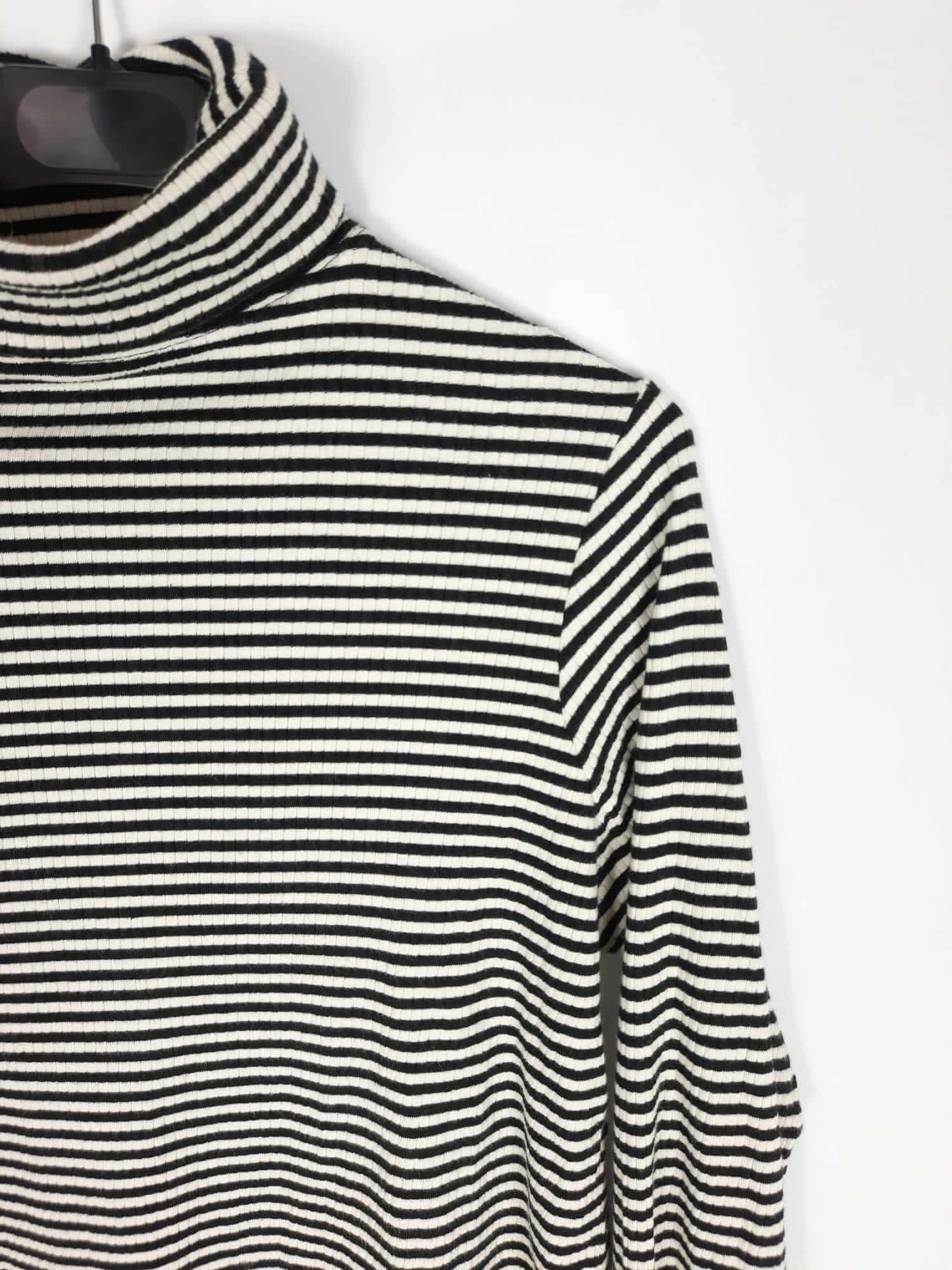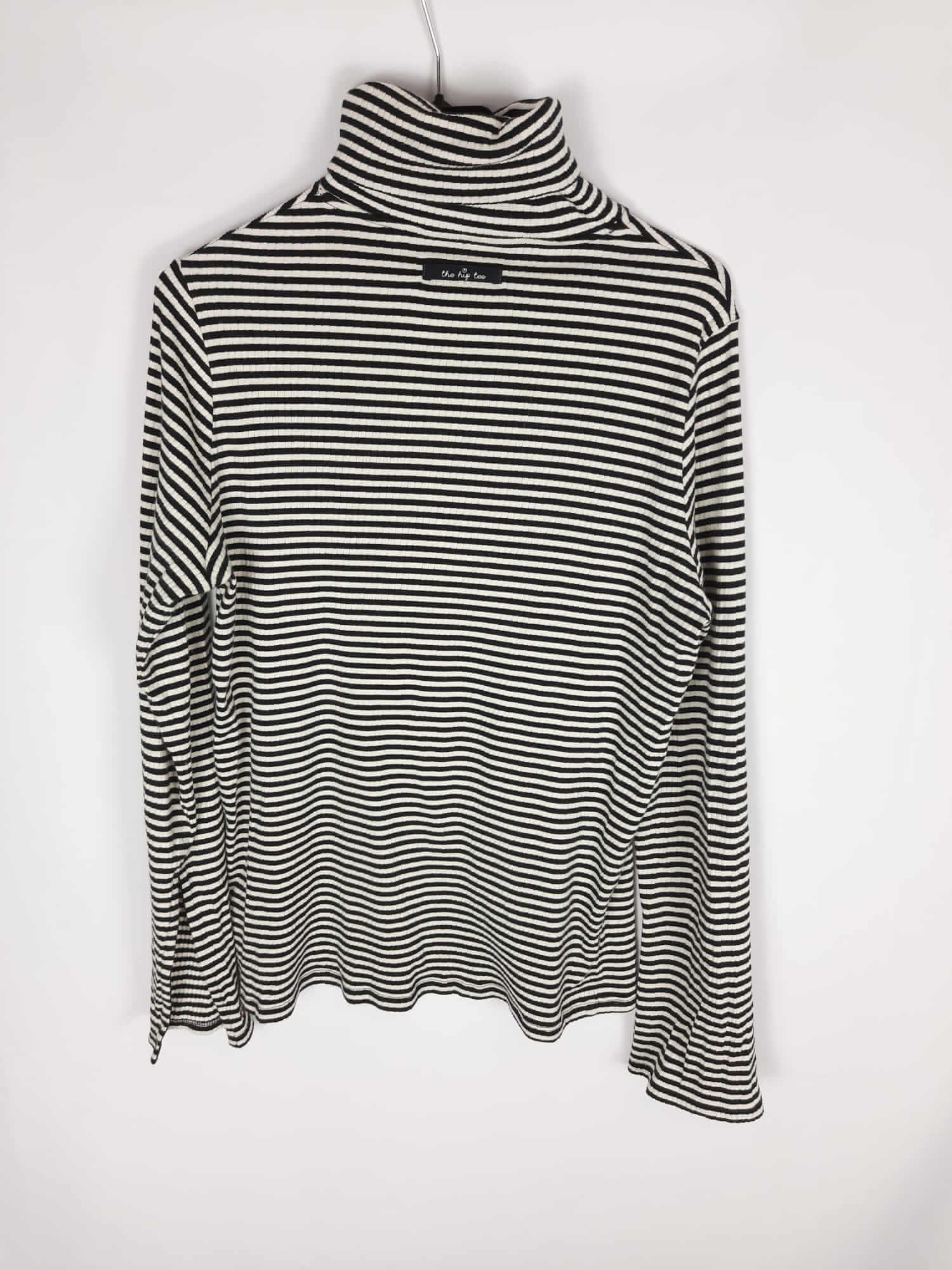 The hip tee. Jersey/top de rayas negro y beige elástico. Tejido tipo punto de canalé. Mangas acampanadas con mini apertura. Largo 67 cm
