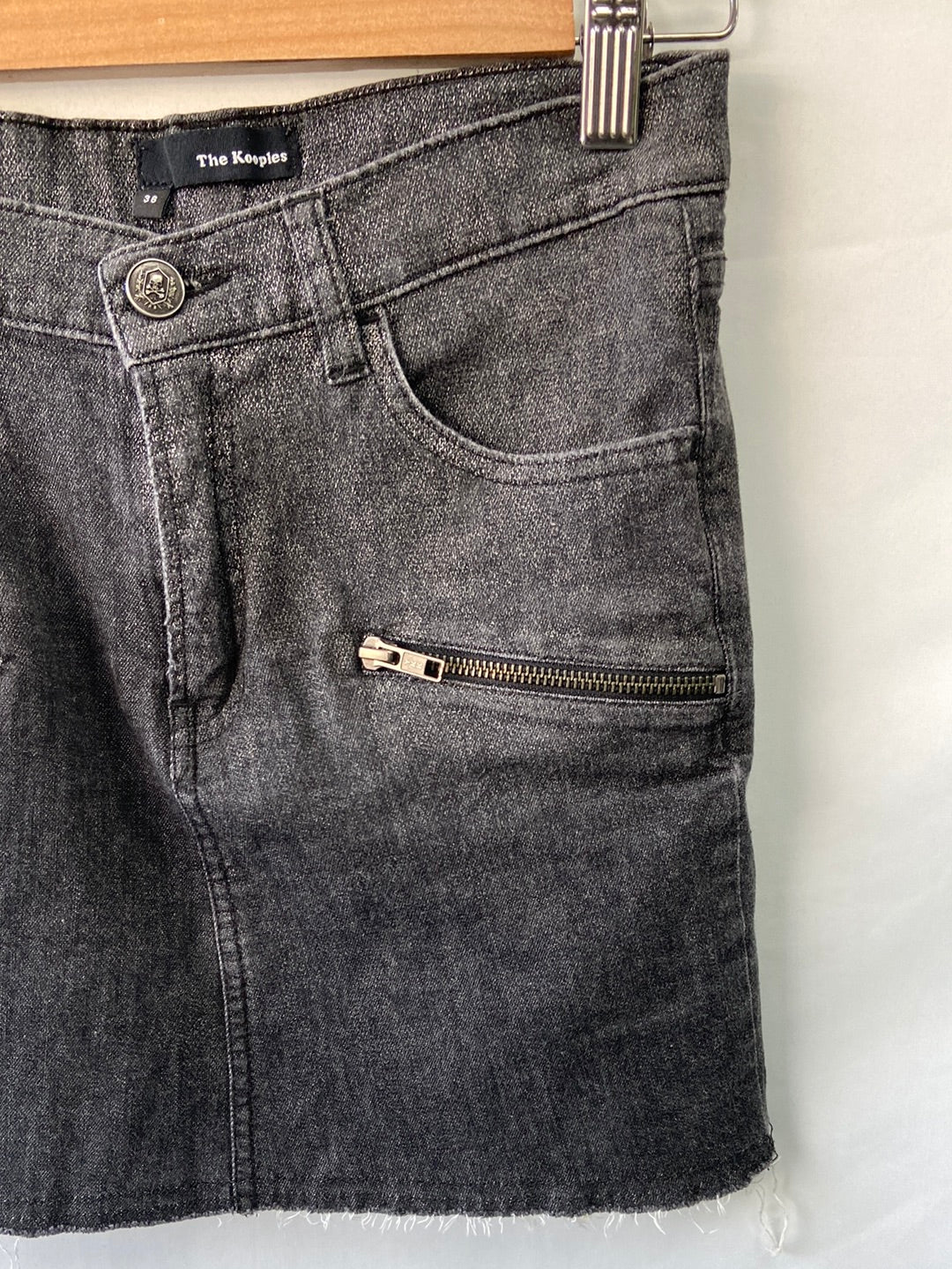 Falda denim muy elástica con detalles plateados en el tejido. Cintura 36 cm largo 38 cm