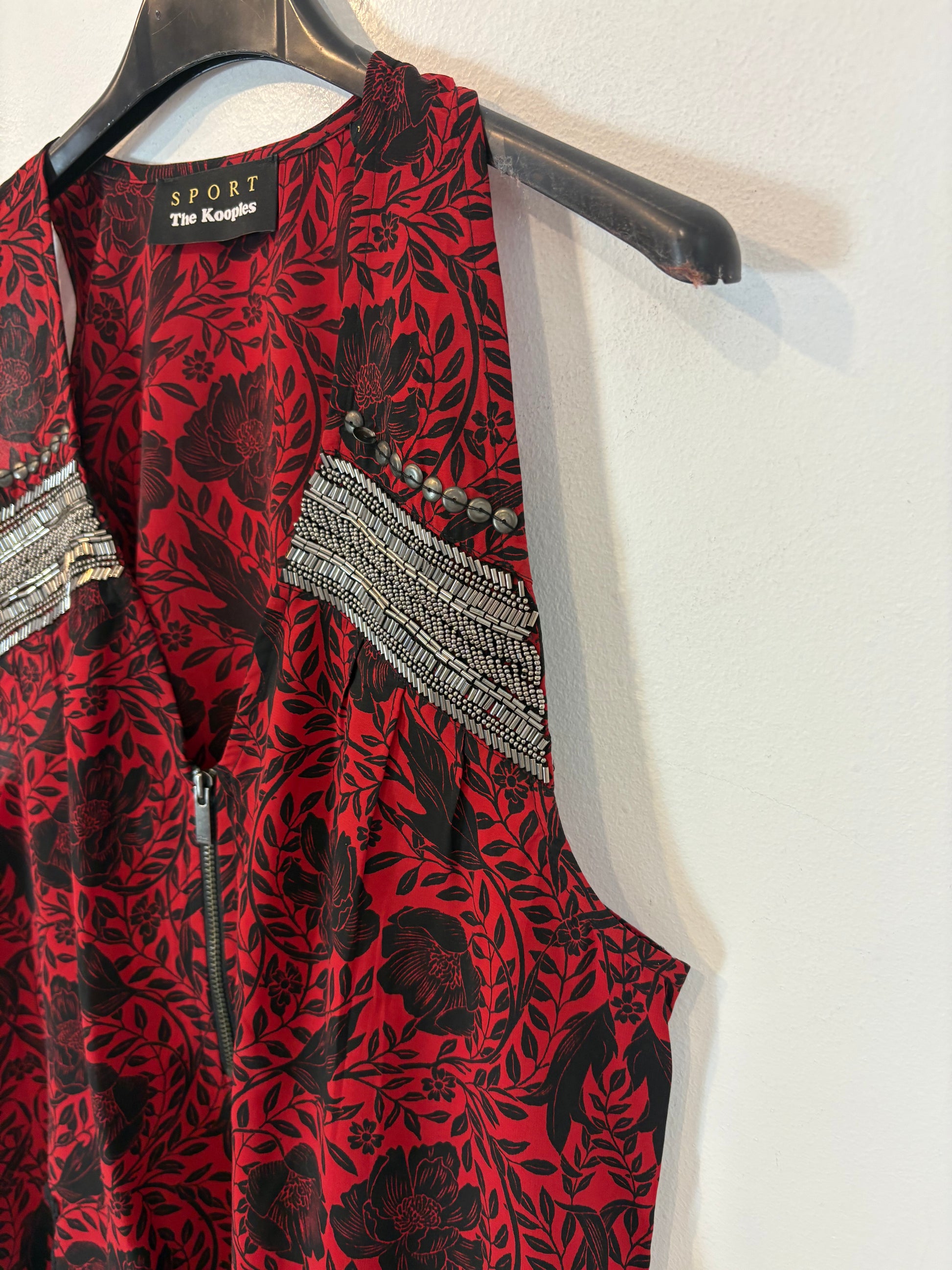 Espalda 46 cm , largo 66 cm. Talla como una S. Fondo rojo