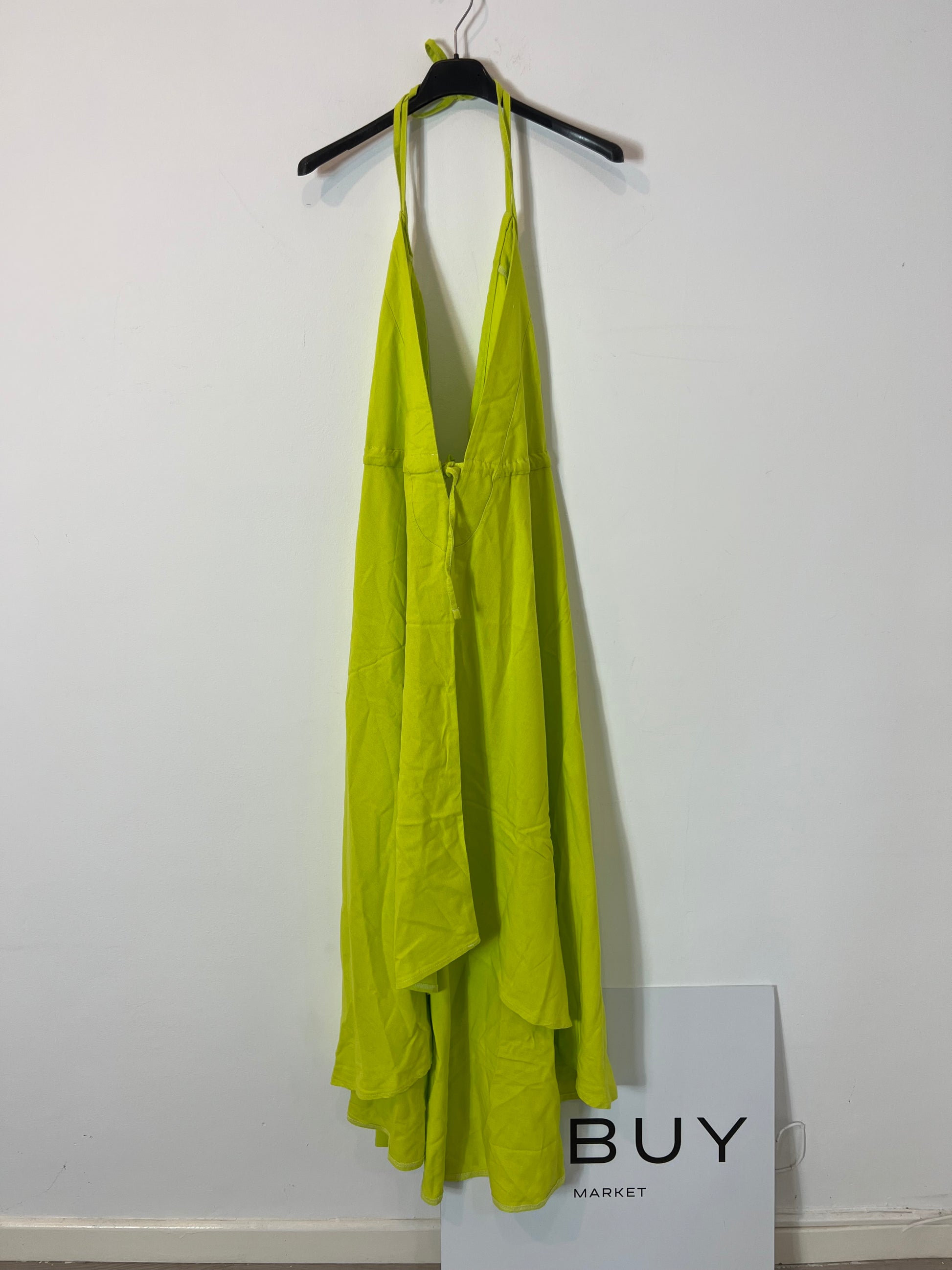 THE LAMU COLLECTION. Vestido asimétrico verde lima. T U (M/L)