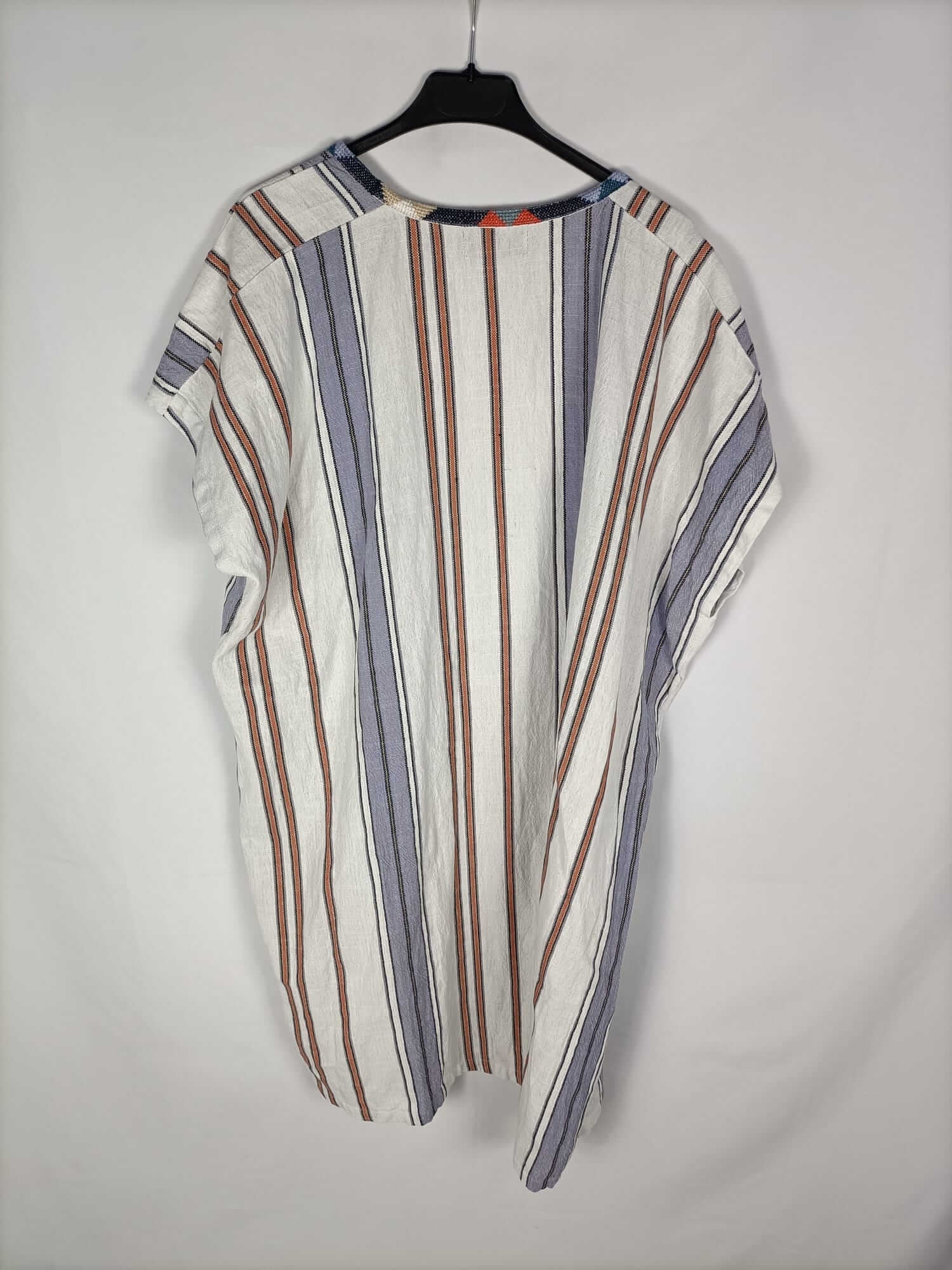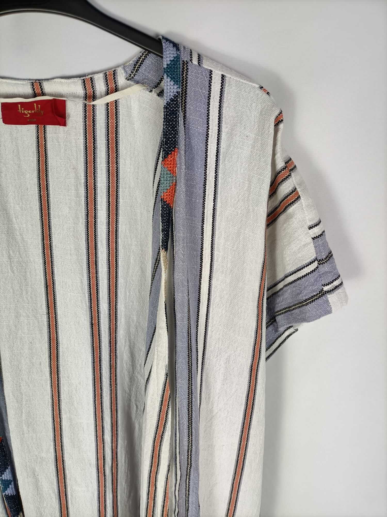 Tigerlily. Kimono de rayas en tonos azules y teja con el fondo blanco roto. 100% algodón tiene para cinturón. Largo 101 cm
