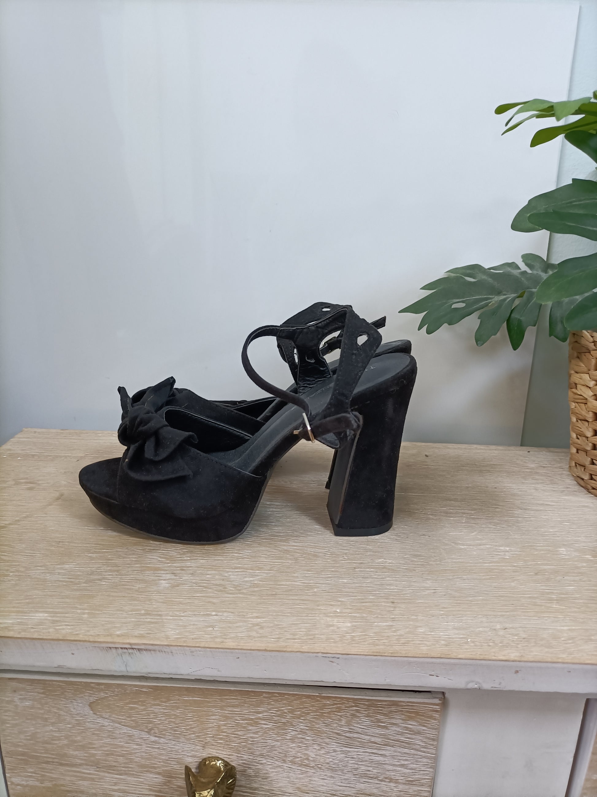 Tacones negros lazo. Plataforma 2 cm tacón 11 cm