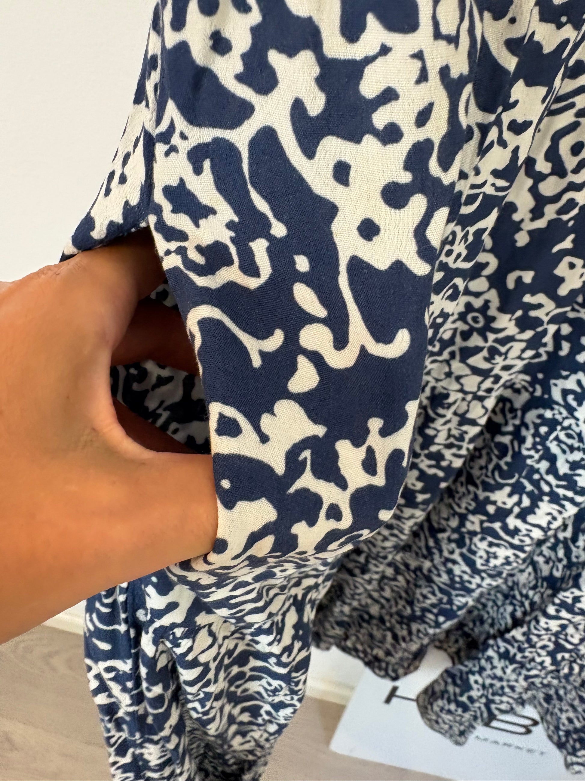 TINTORETTO. Vestido largo azul estampado. T 44
