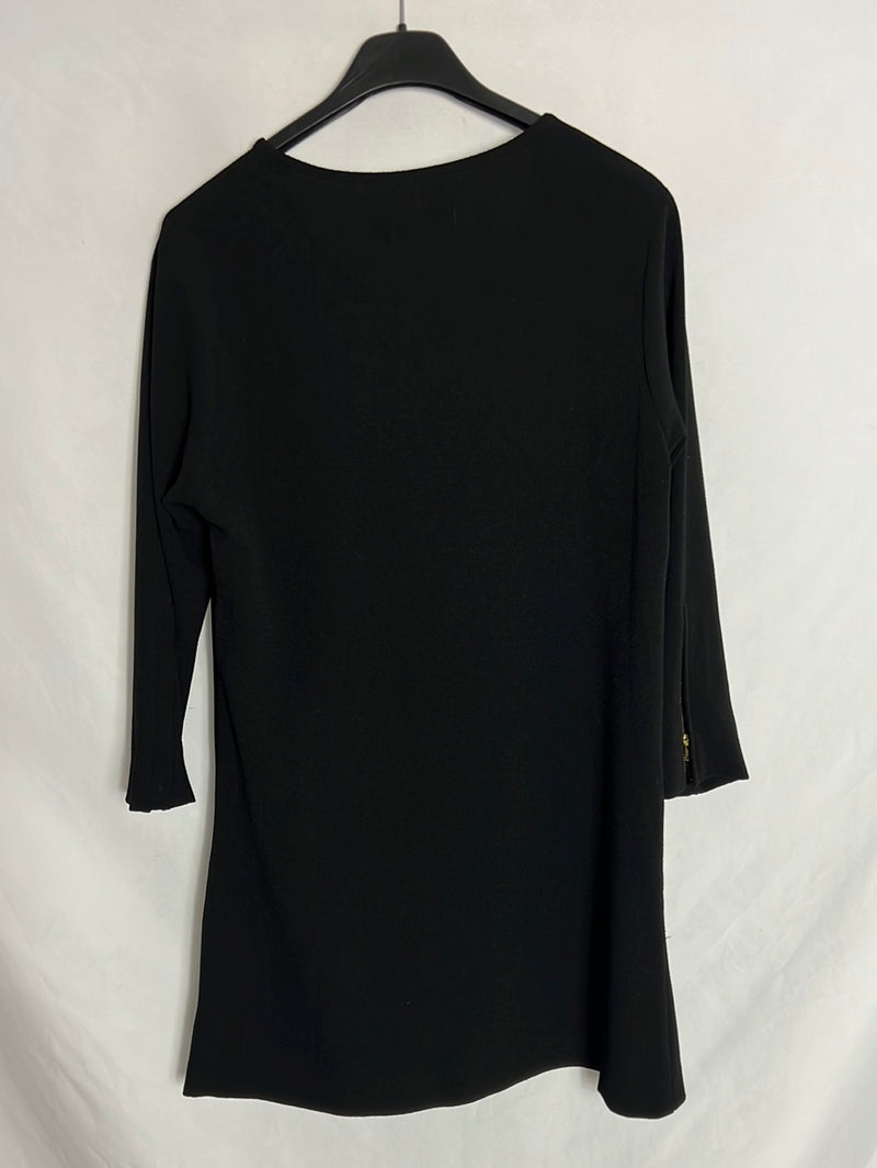TINTORETTO. Vestido negro corto cremalleras. T 36