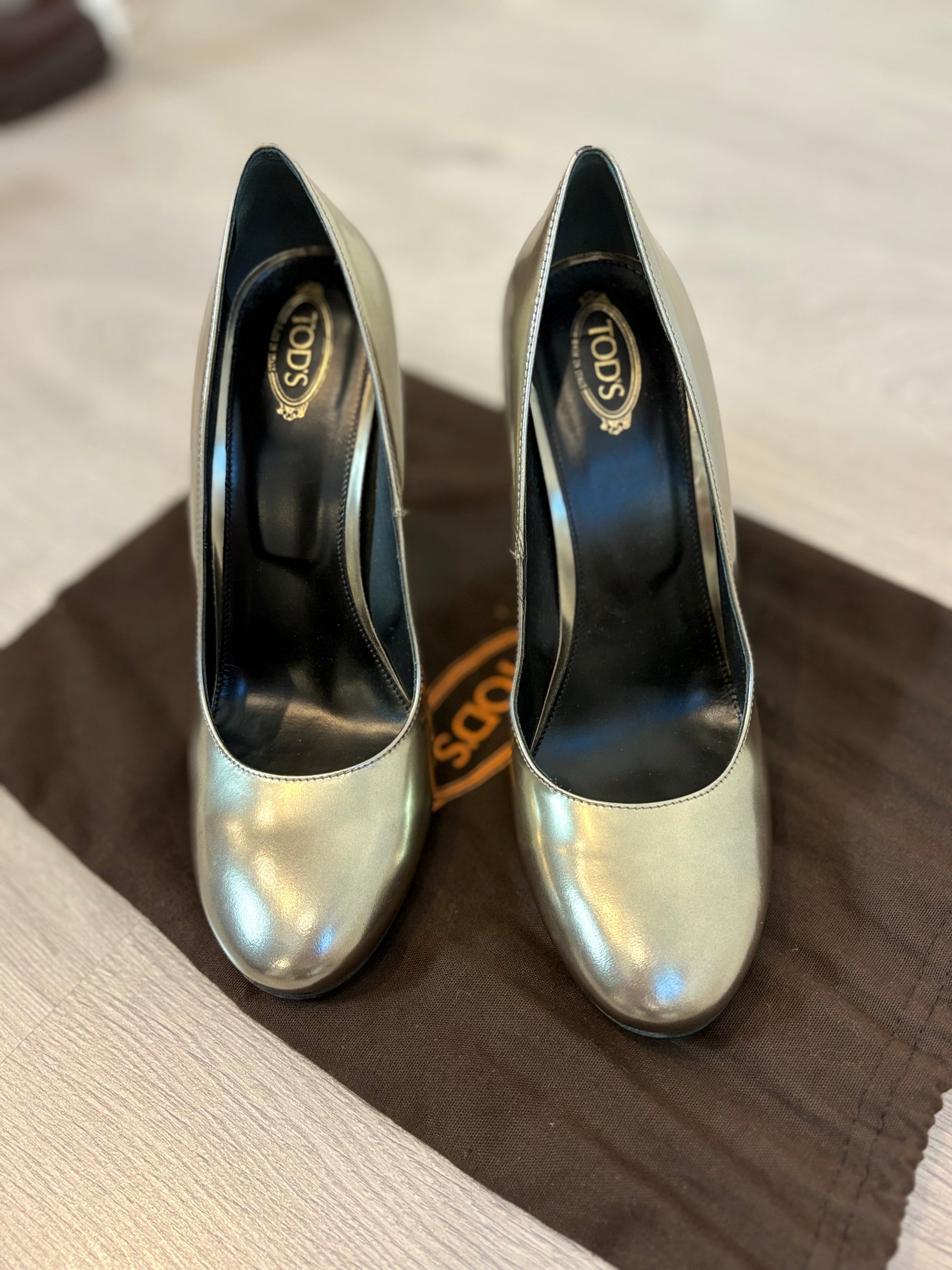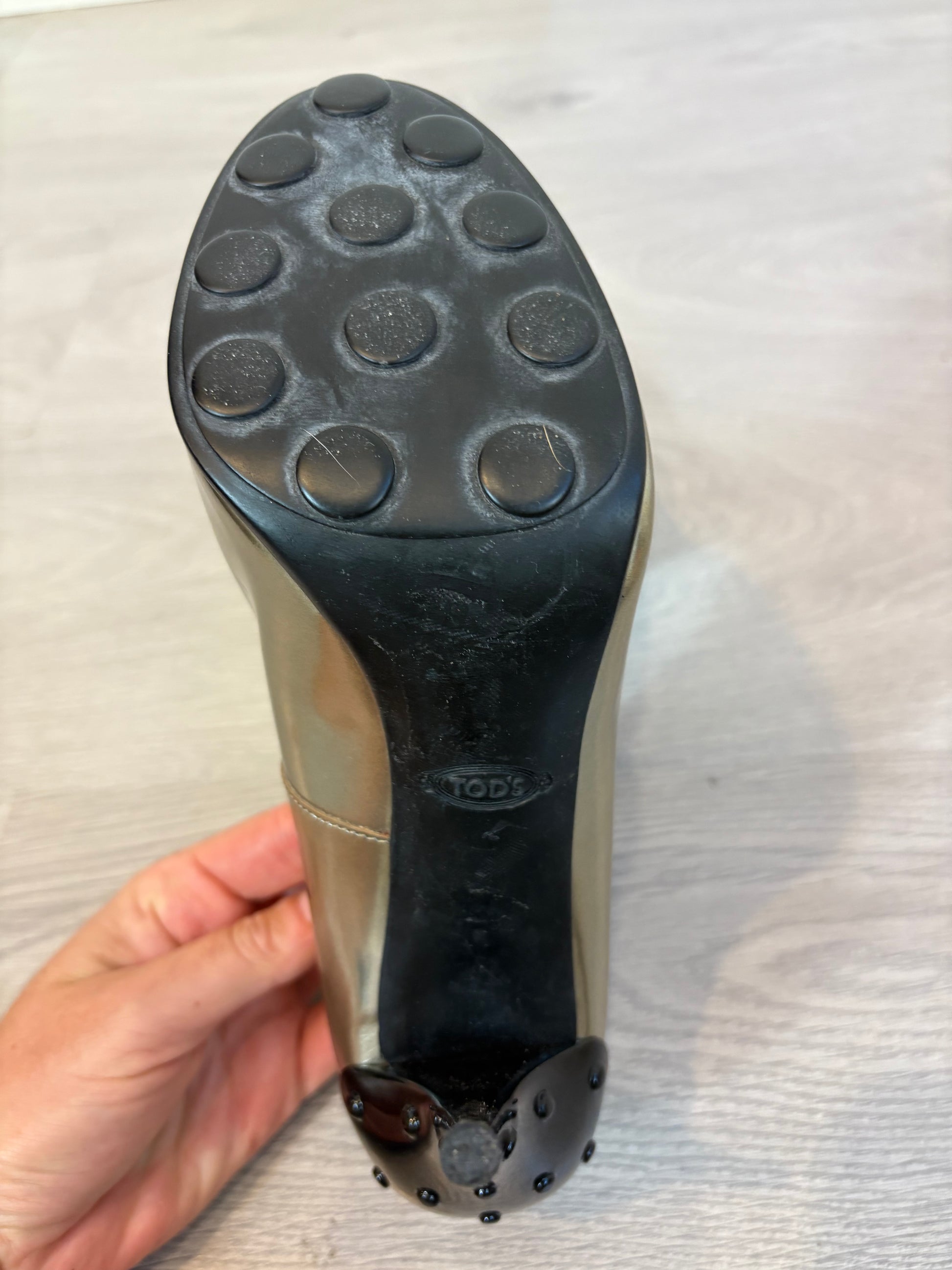 EN PERFECTO ESTADO. Salones metalizados detalle tacón. Altura tacón 12 cm.