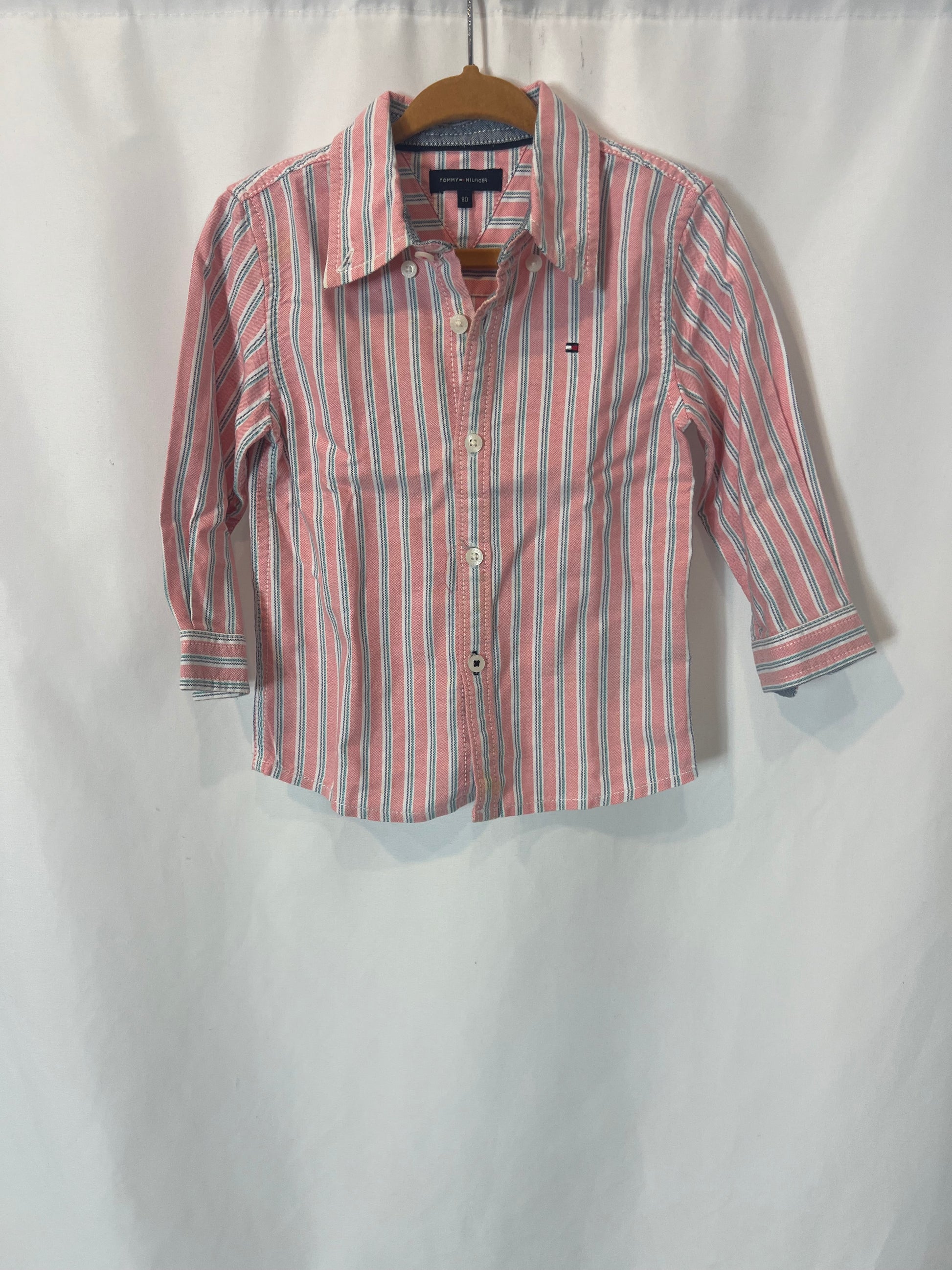 TOMMY HILFIGUER. Camisa rayas logo. T 9-12 meses