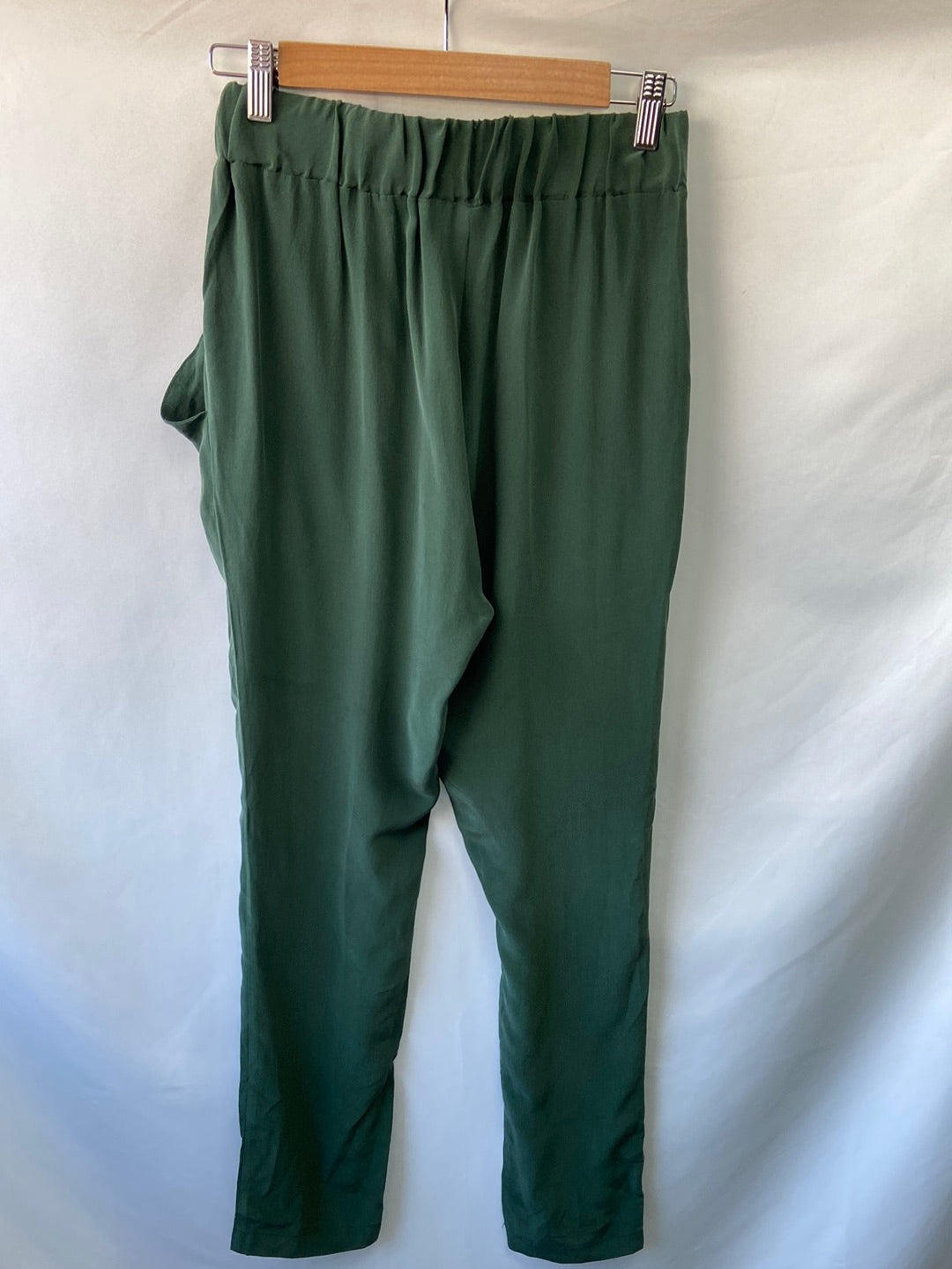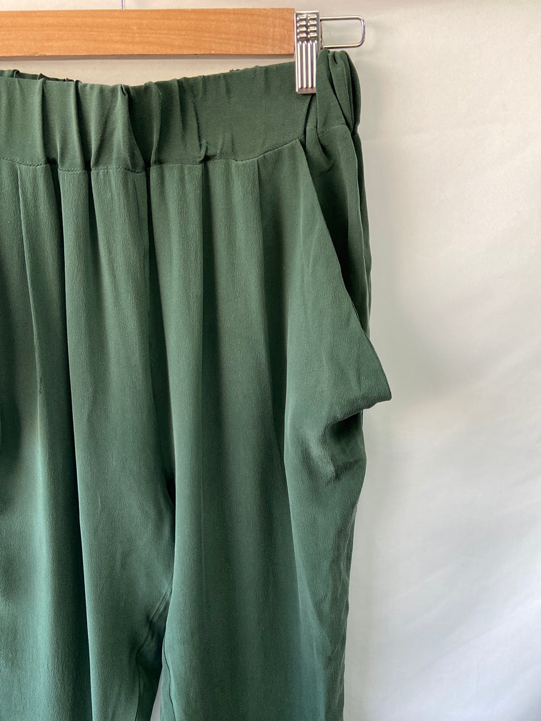 Pantalón verde fluido con cintura elástica. Largo 100 cm