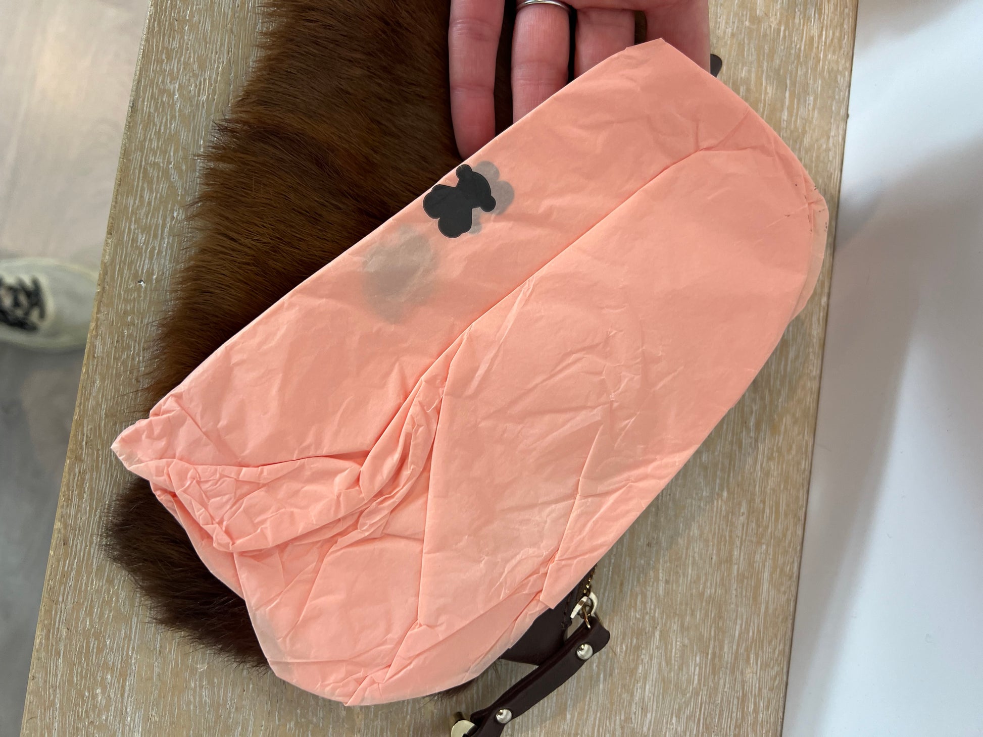 NUEVO SIN USO.  Cartera de mano doble textura marrón. Alto 16cm, ancho 22cm
