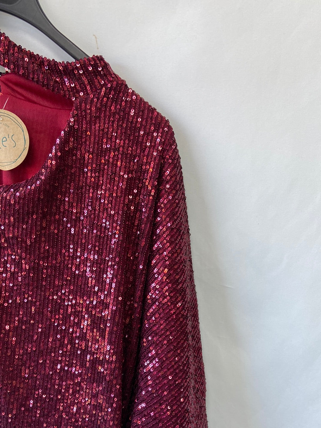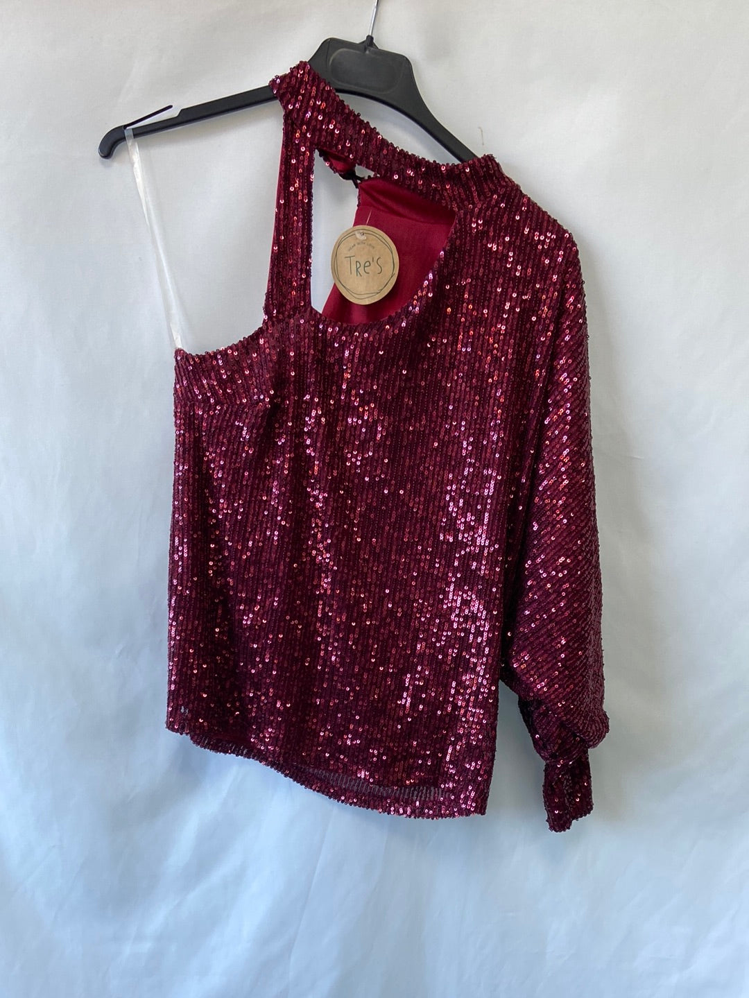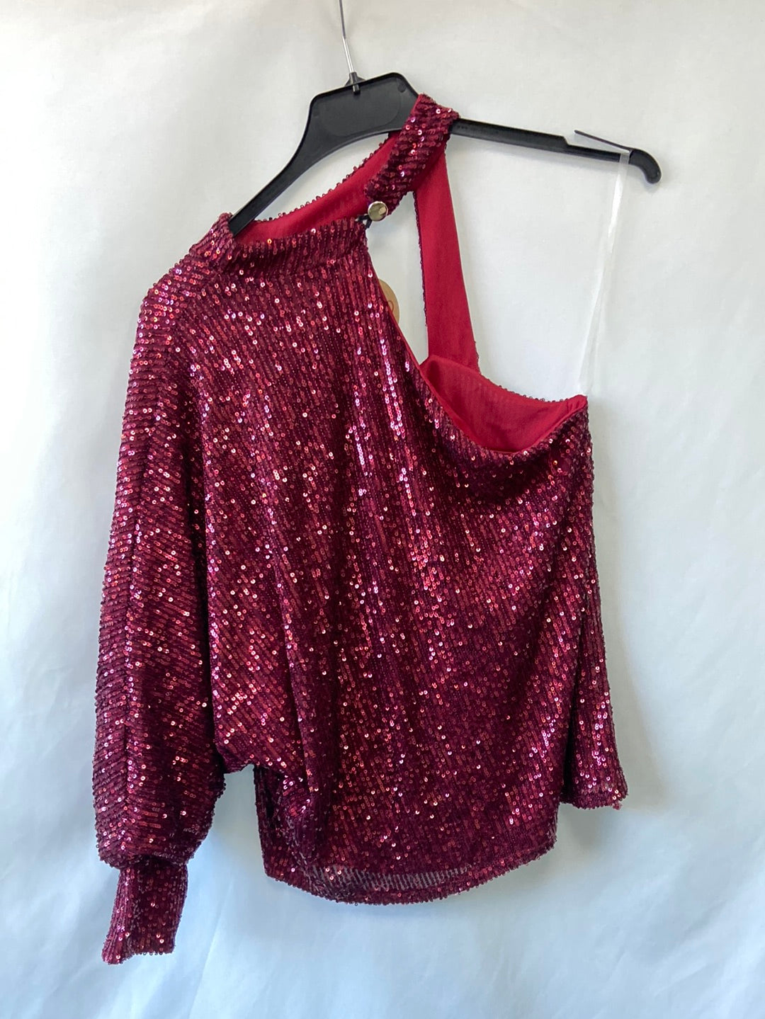 NUEVO CON ETIQUETA.Top burdeos elástico lentejuelas asimétrico. (14.90€).