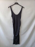 Vestido negro elástico y fruncido. Es ajustado. Largo 112 cm