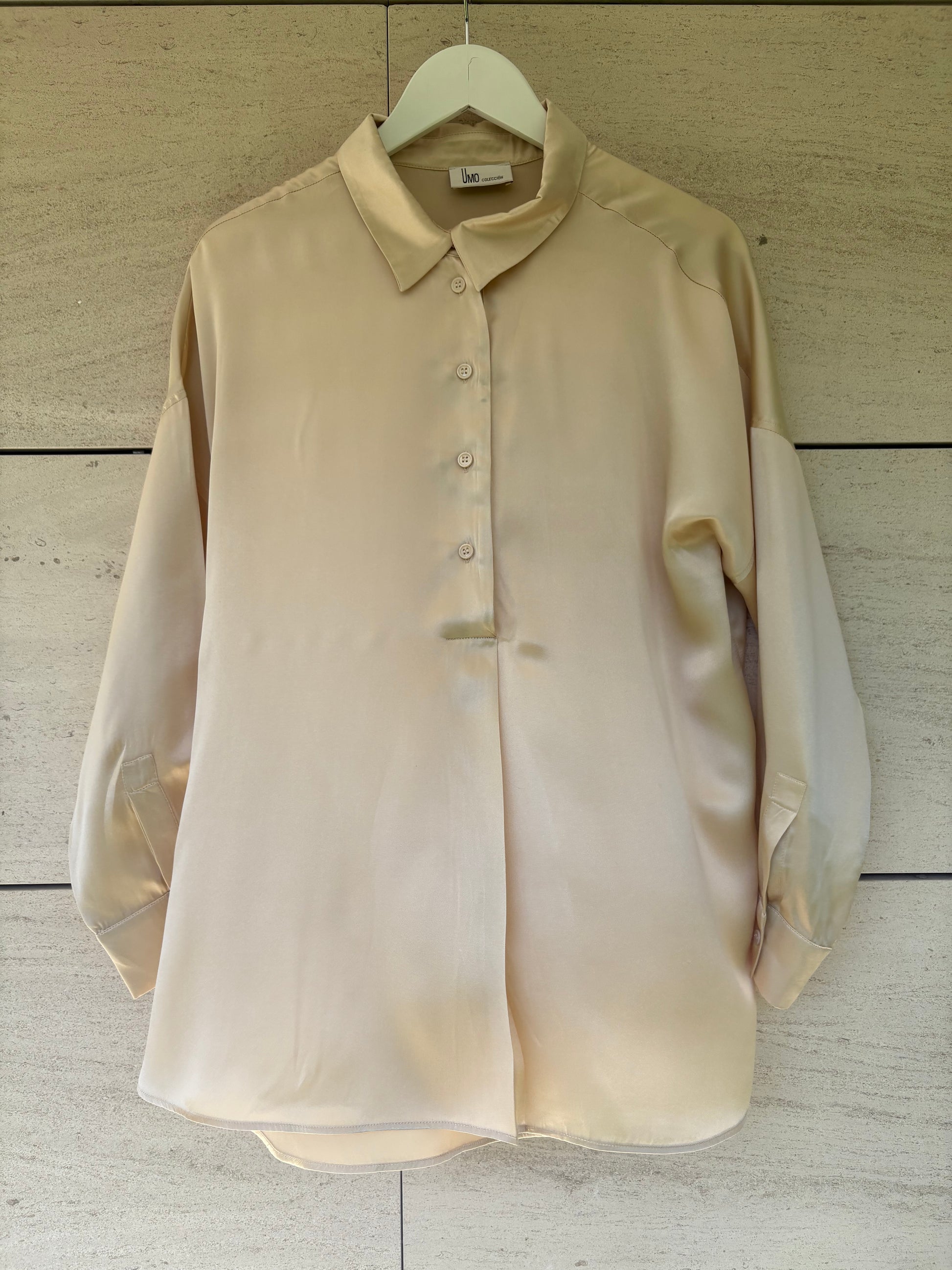 UMO. Blusa beige seda fluida T.38