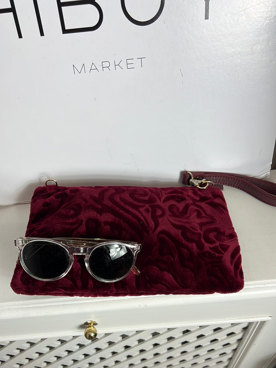 bolso de mano de terciopelo.