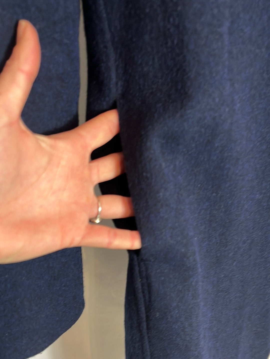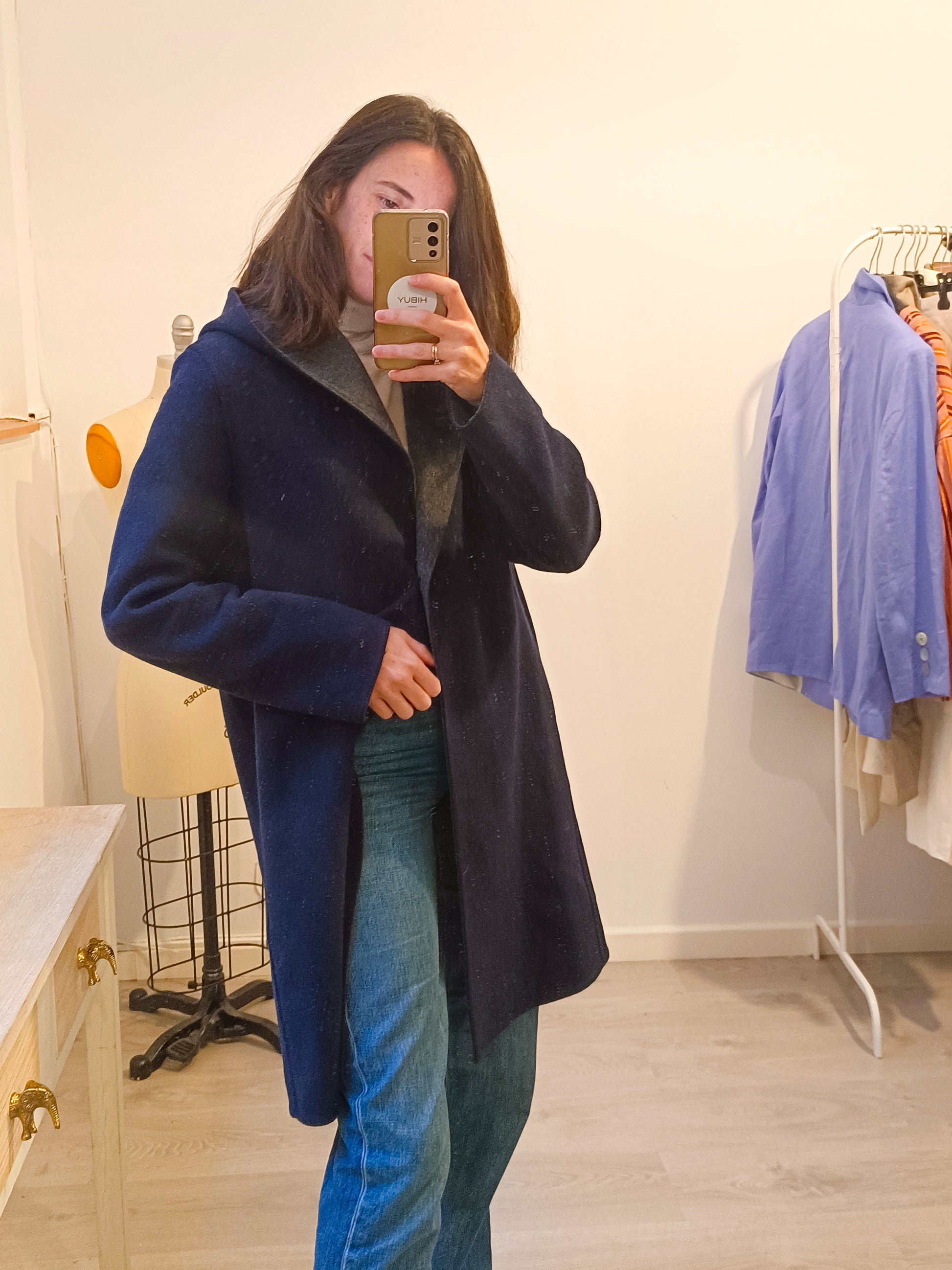 Abrigo azul lana capucha. Hombros 41cm, largo 93cm