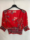 URBAN OUTFITTERS. Top rojo flores fruncidos. T S