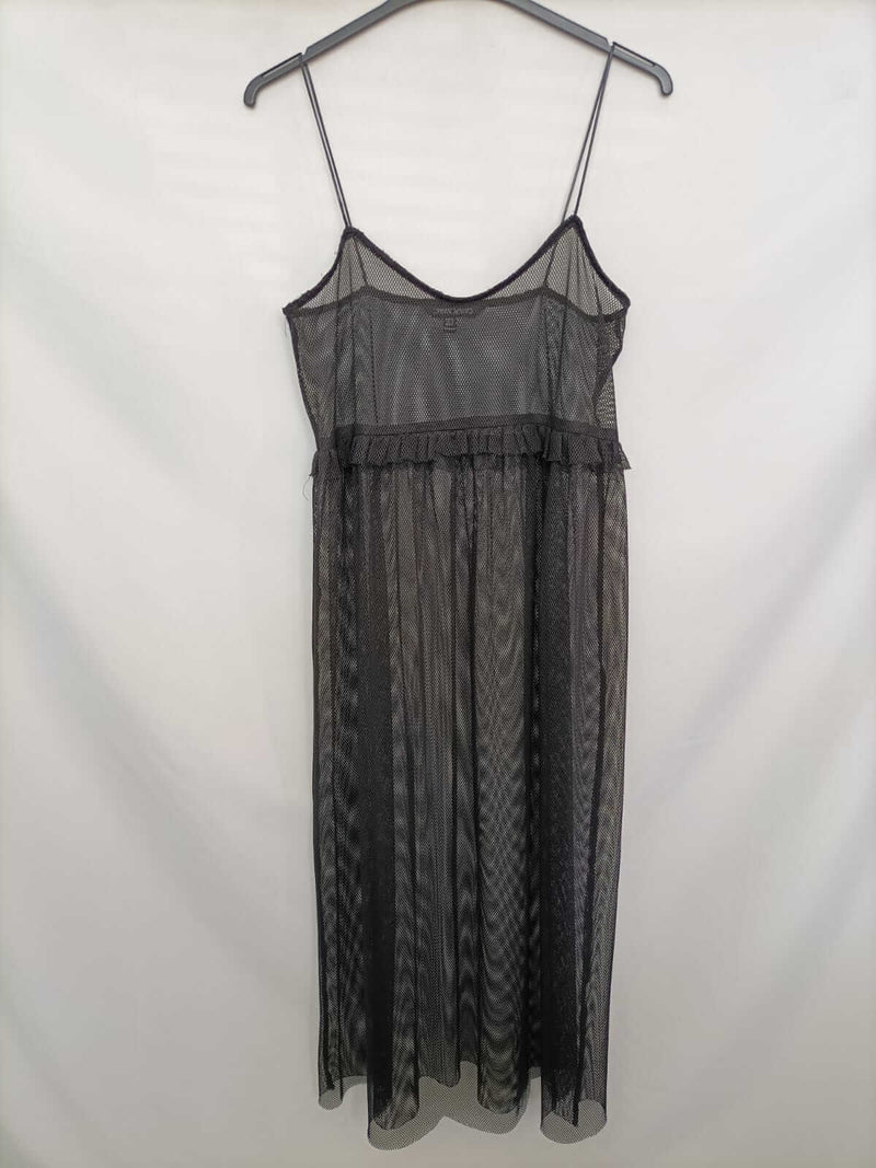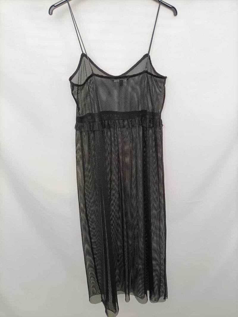 Urban revivo. 38. Vestido midi negro de rejilla. Transparente. Elastico. Largo 123 cm