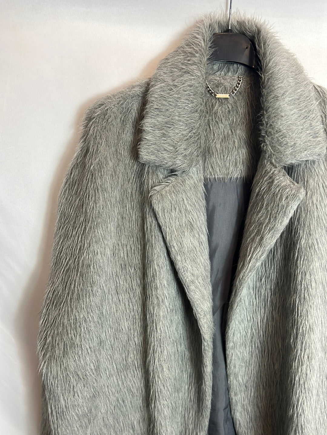 UTERQÜE. Abrigo pelo gris cinturón. T M