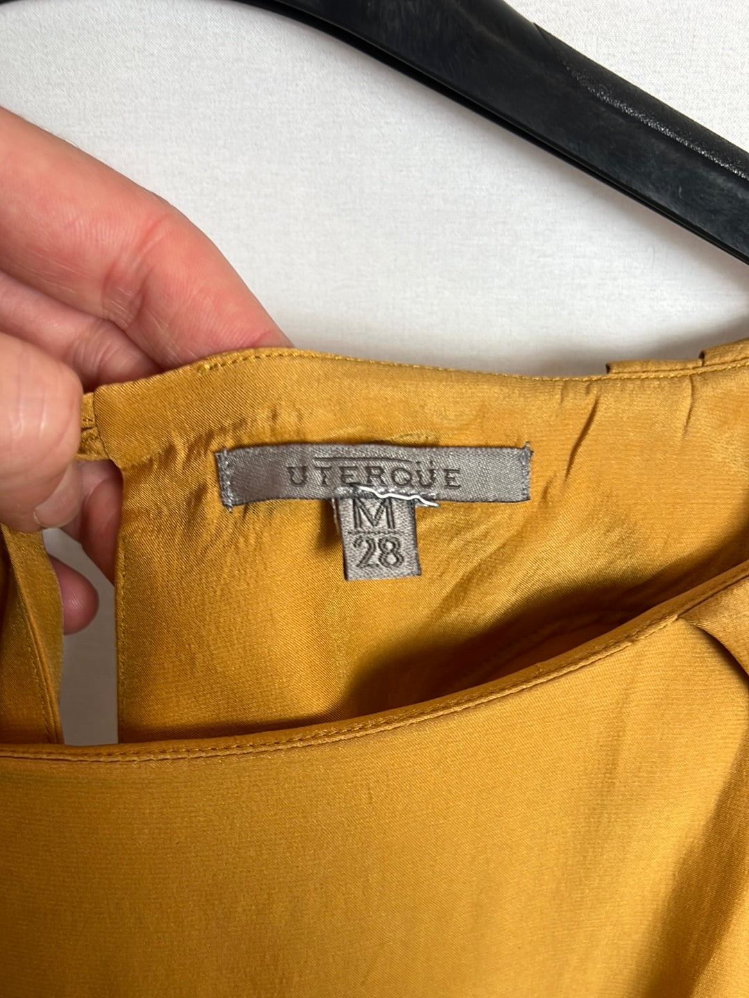 UTERQÜE. Blusa seda mostaza detalle hombros. T M