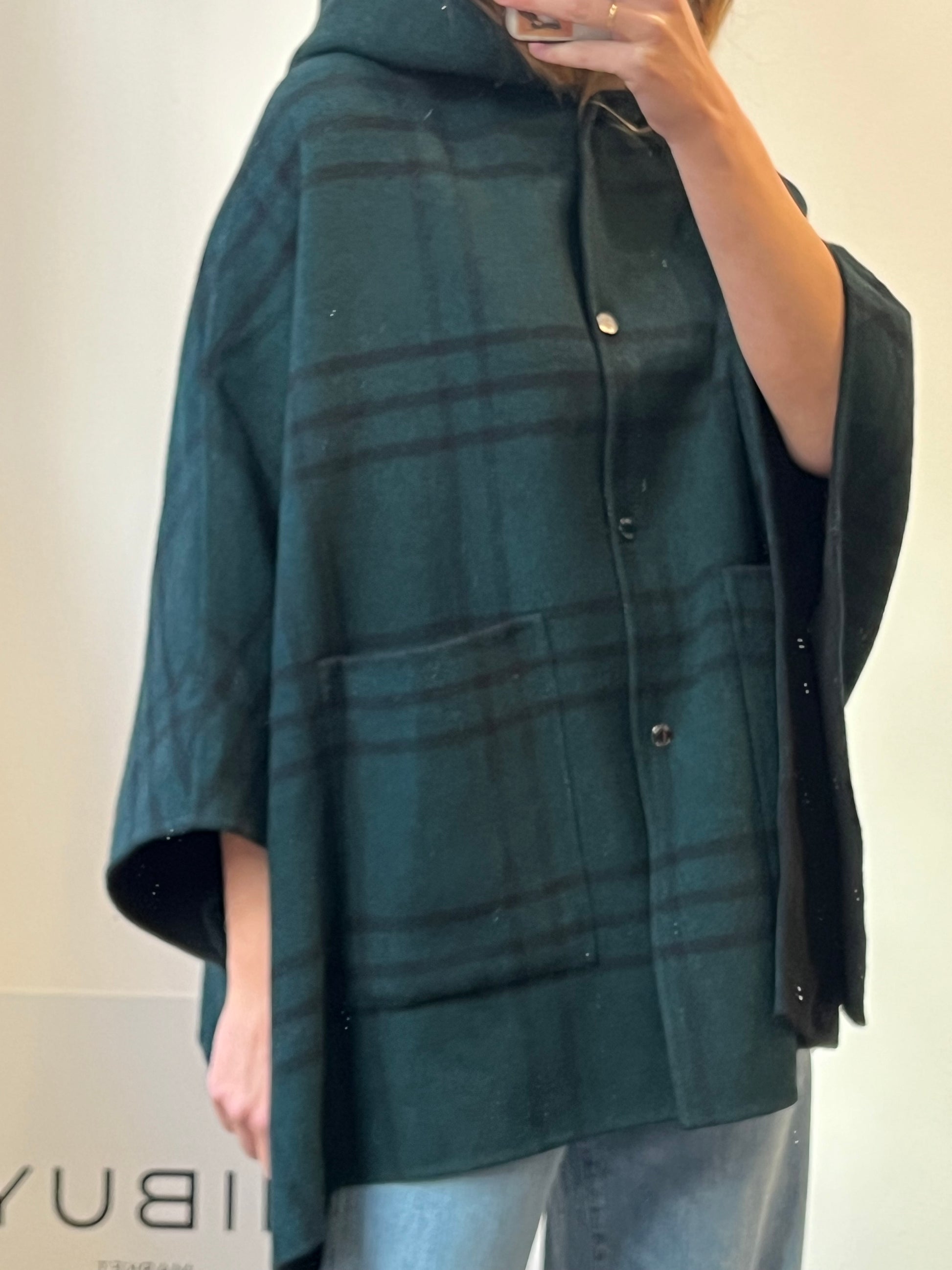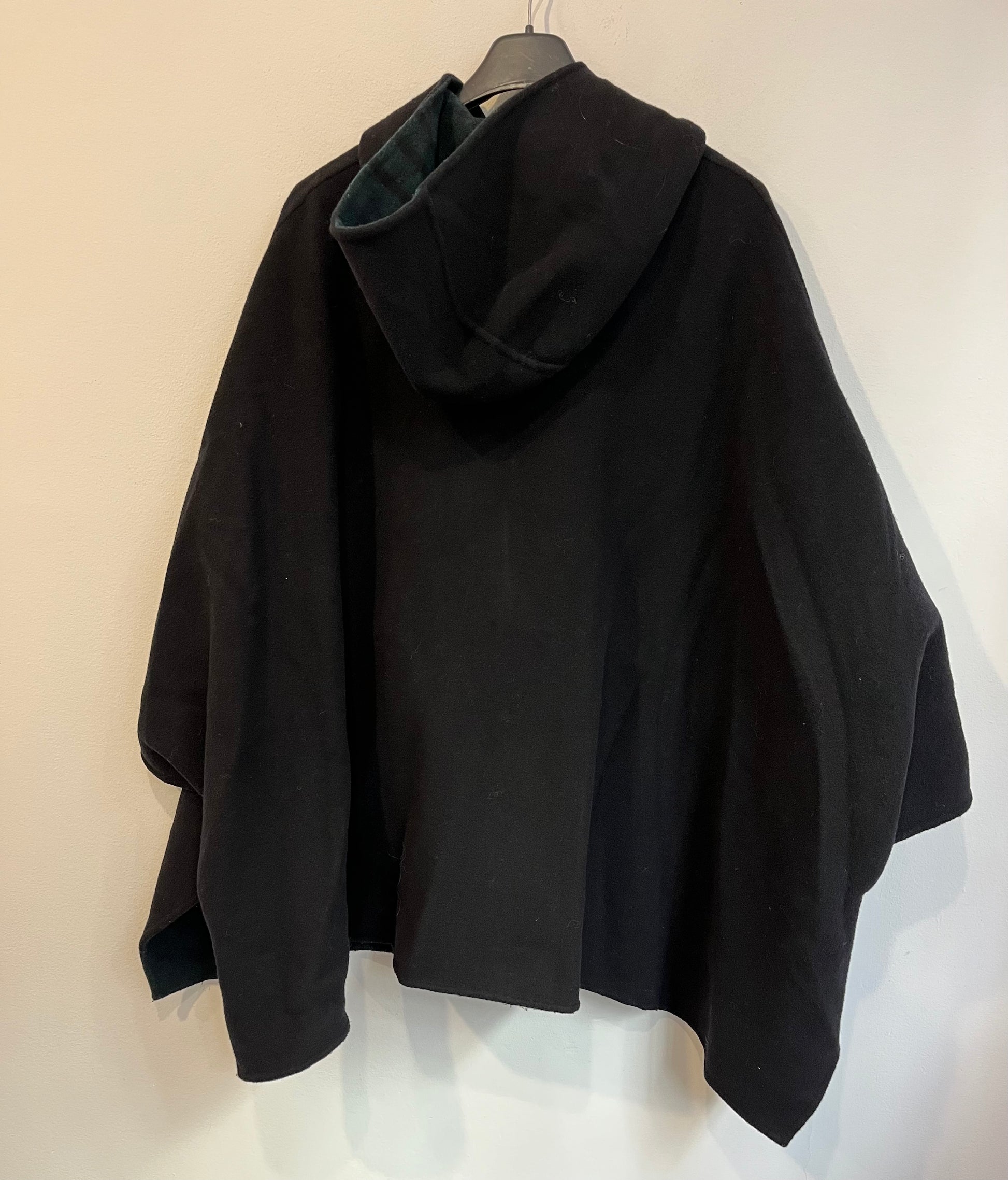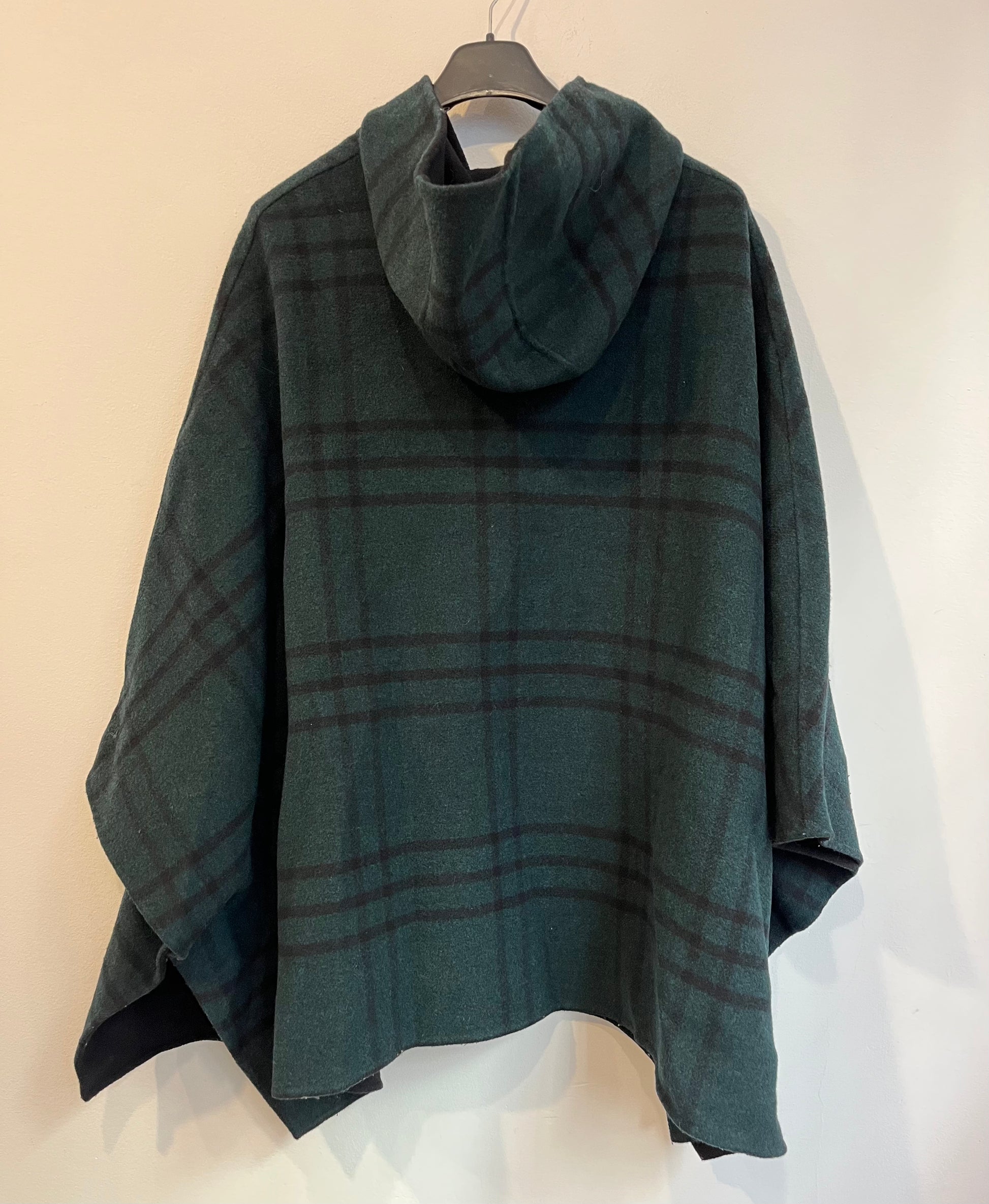 Capa lana cuadros reversible. Negra y verde oscuro. Largo 73 cm