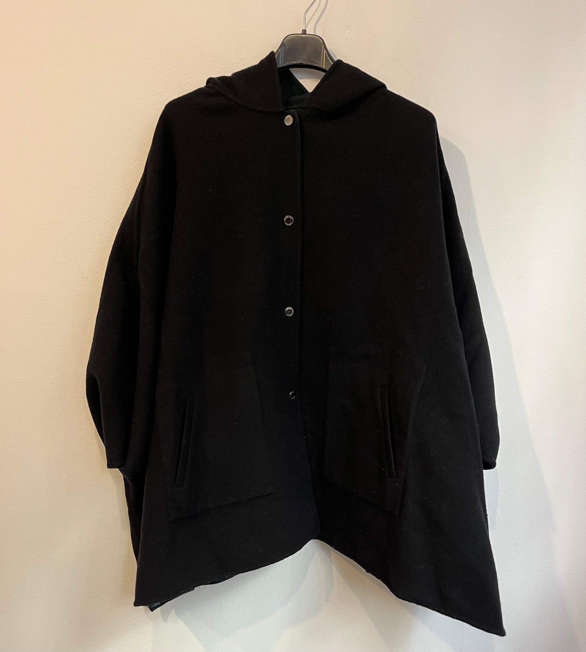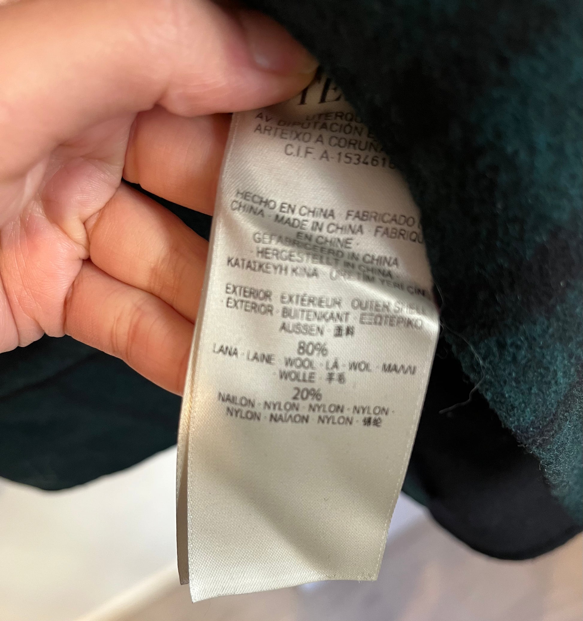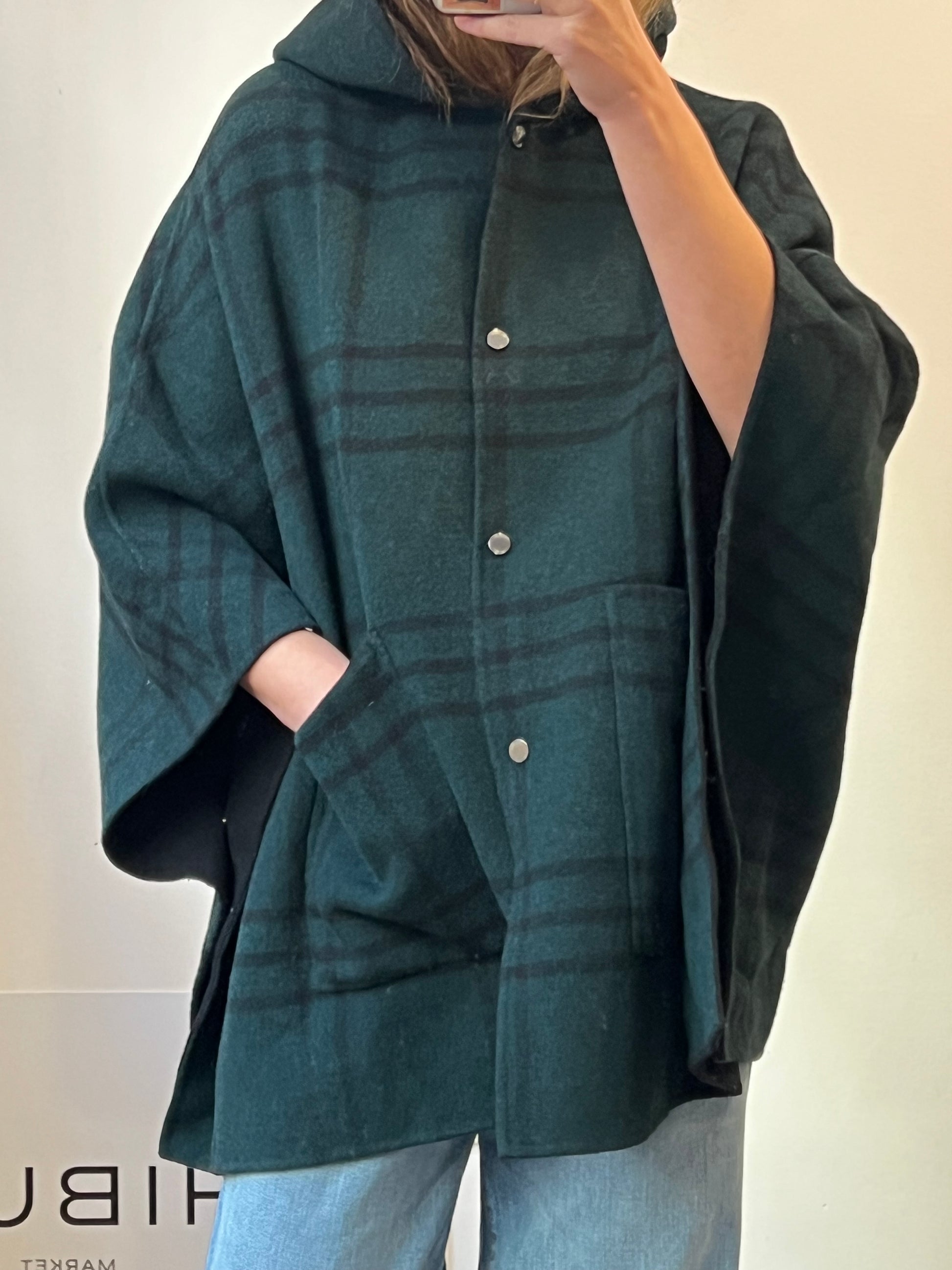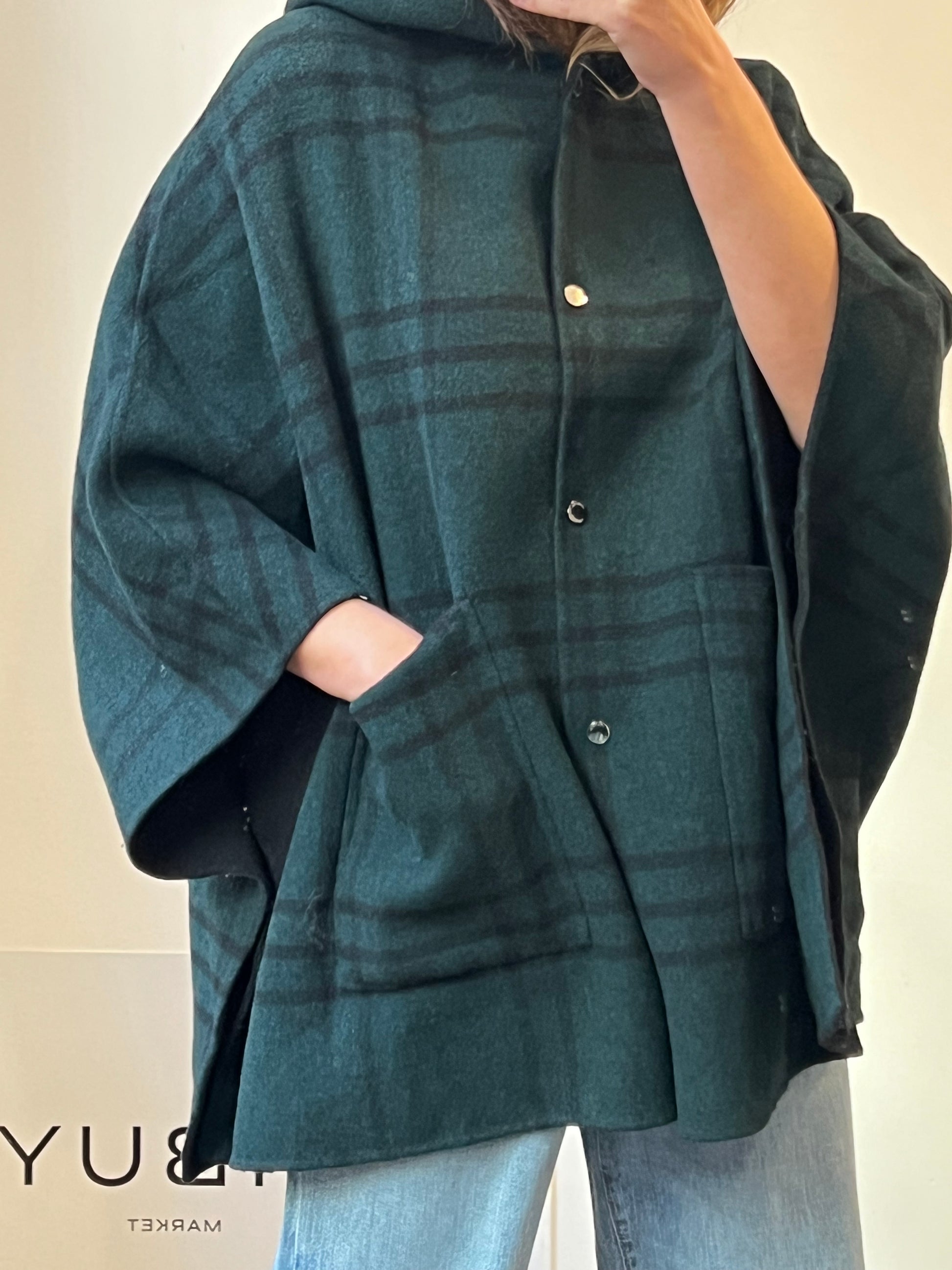 Capa lana cuadros reversible. Negra y verde oscuro. Largo 73 cm