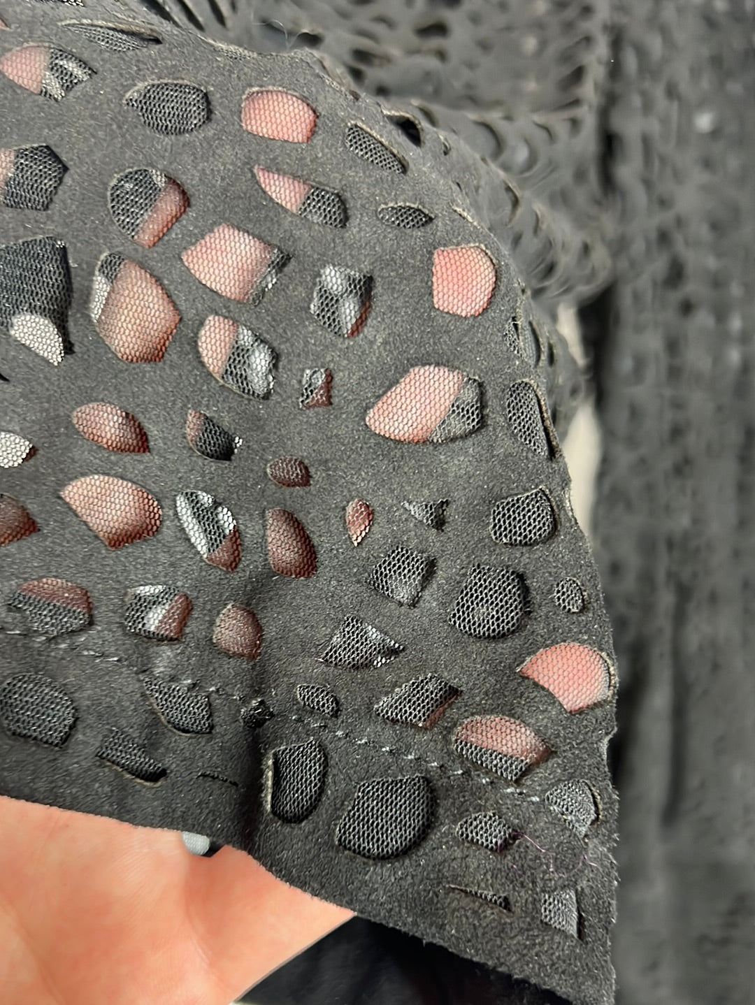UTERQÜE. Chaqueta negra piel troquelada. T S (Tara)e