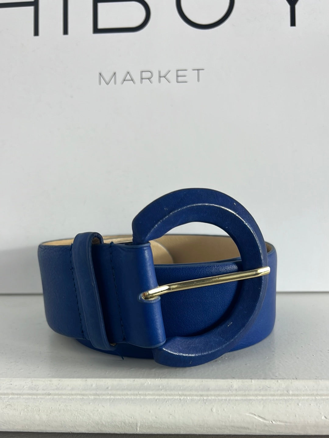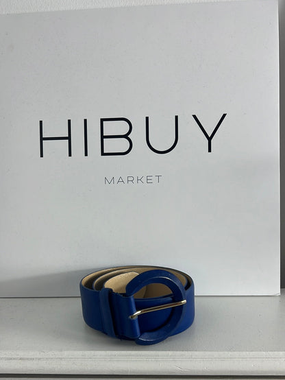 UTERQUE. Cinturón ancho piel azul. T 80 (tara)