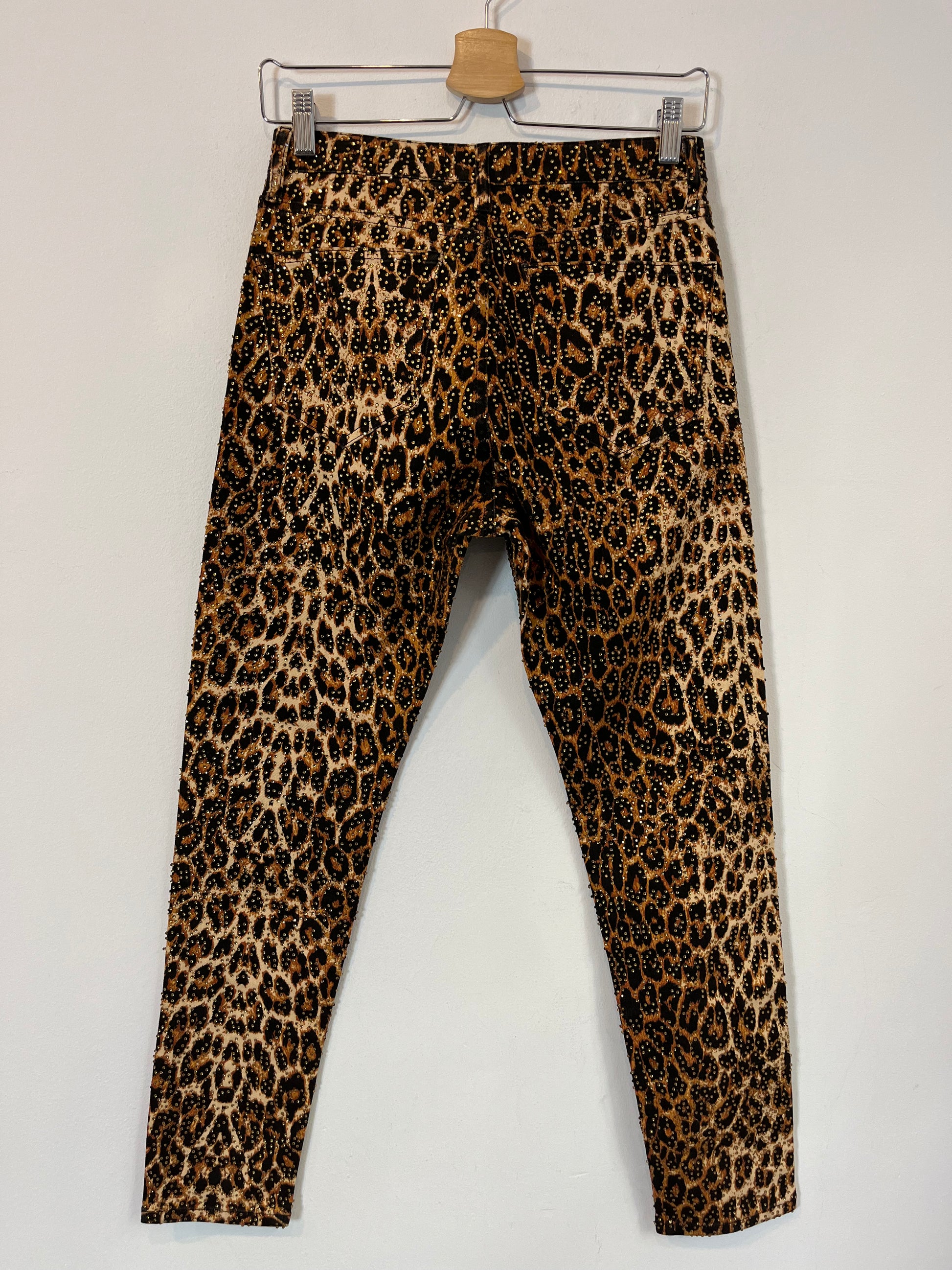 Denim animal print pedrería. No elástico. Cintura 36 cm, largo 95 cm