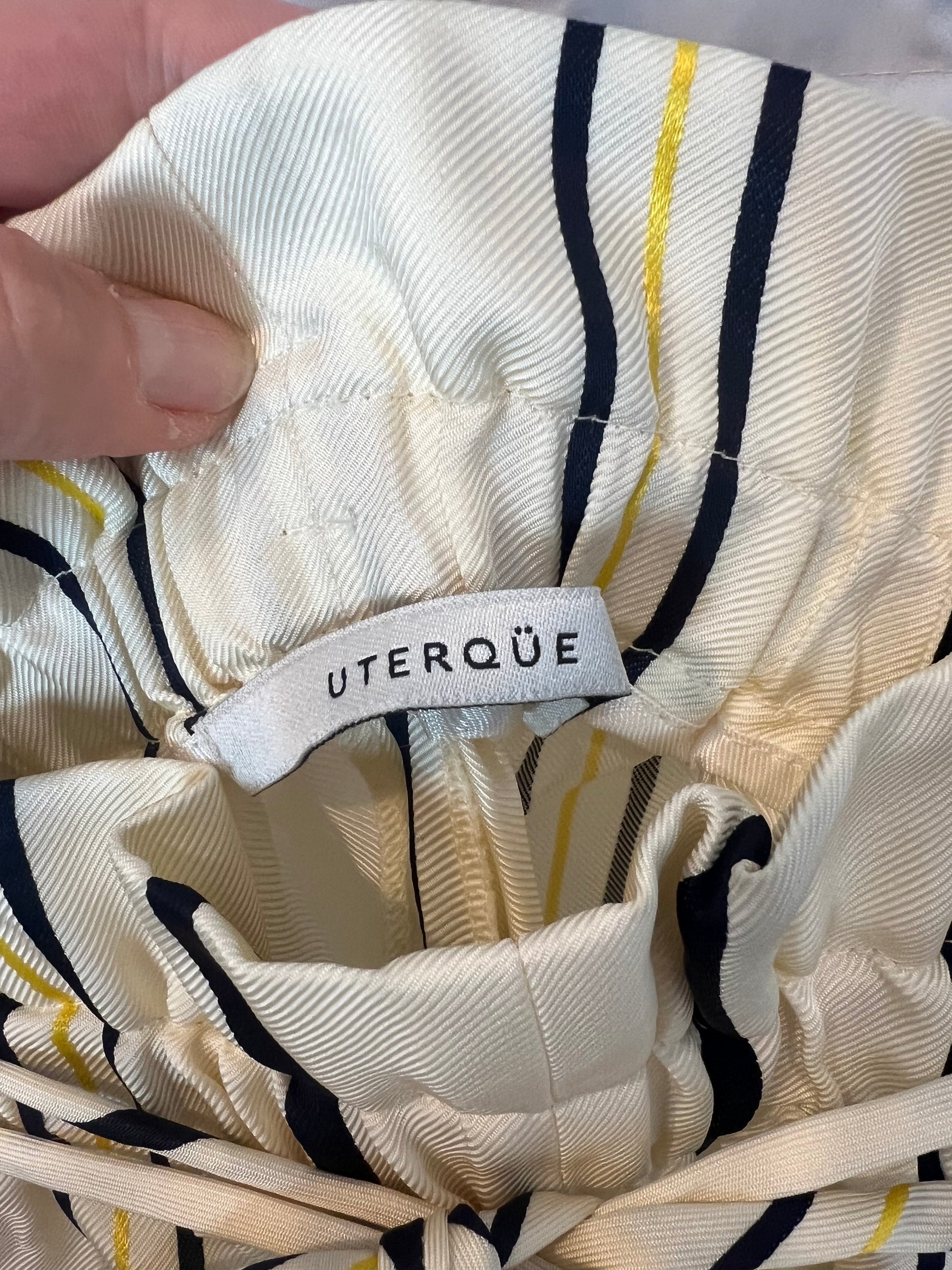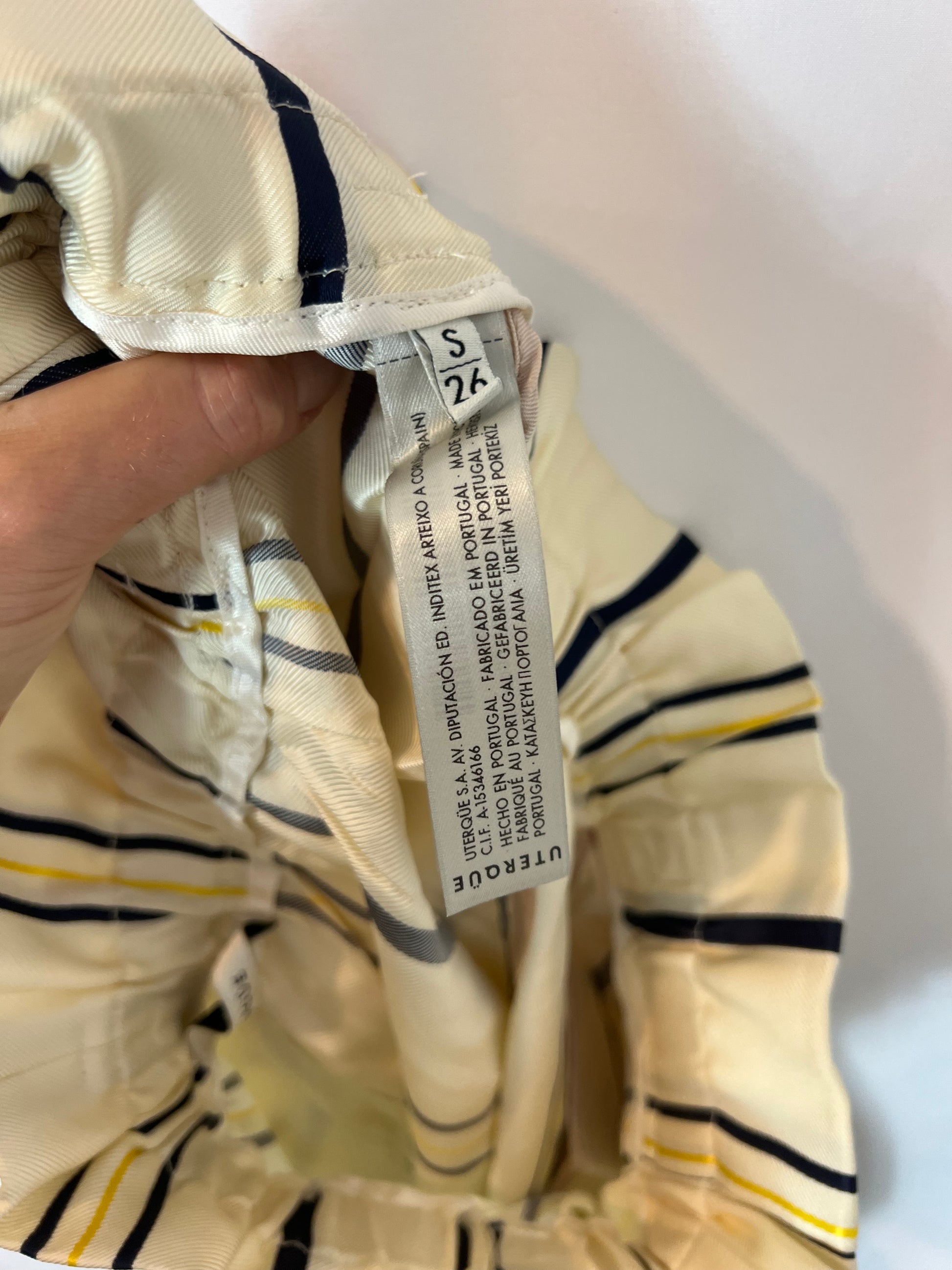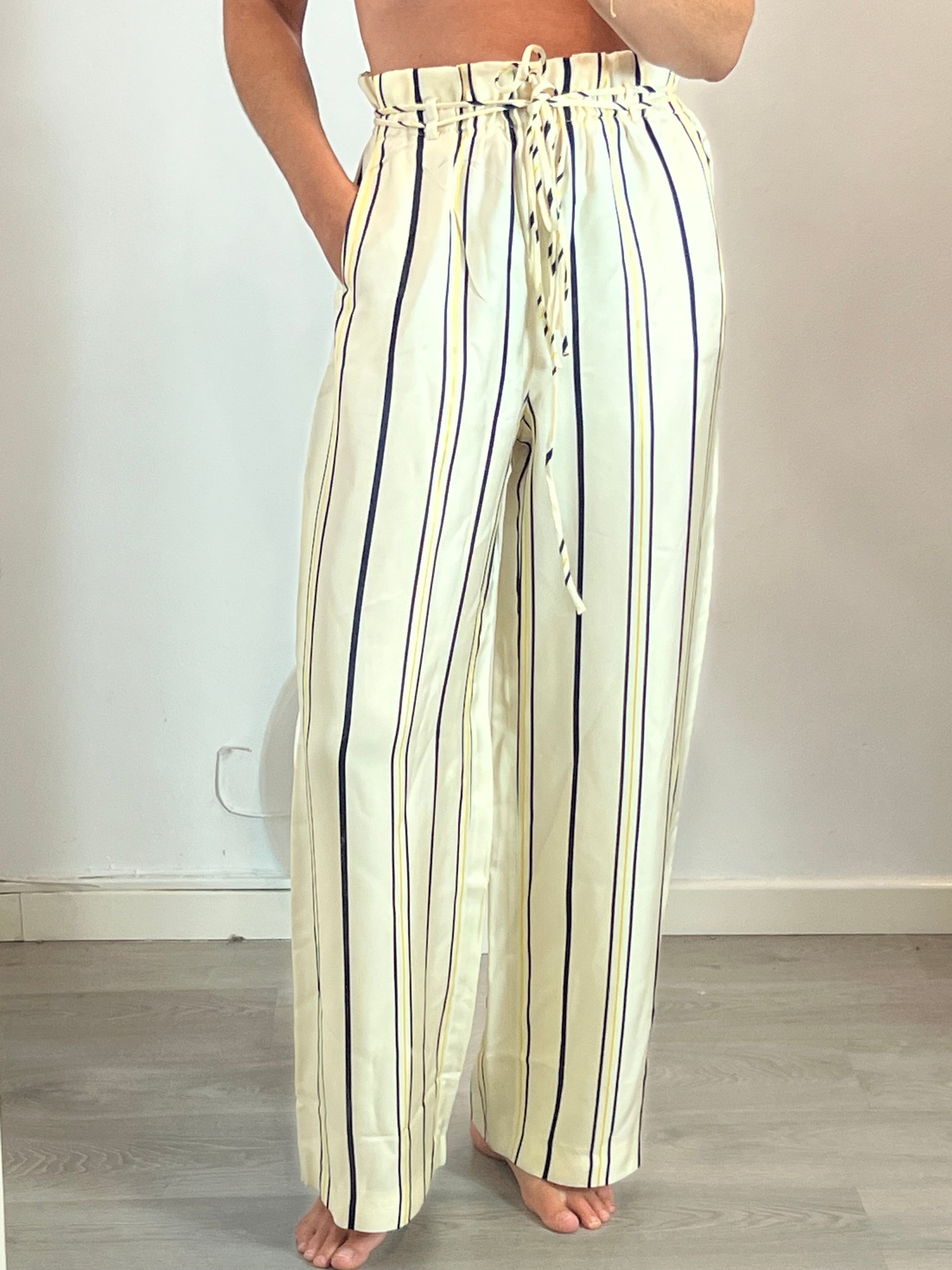 Pantalón fluido rayas cinturón. Cintura 34cm, largo 110cm