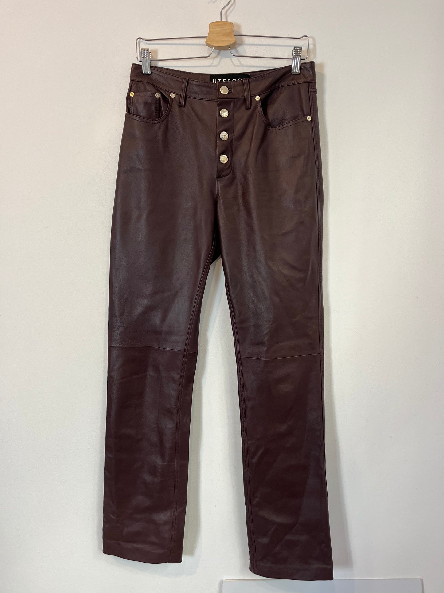 UTERQÚE. Pantalón marrón chocotate abotonado. T 36