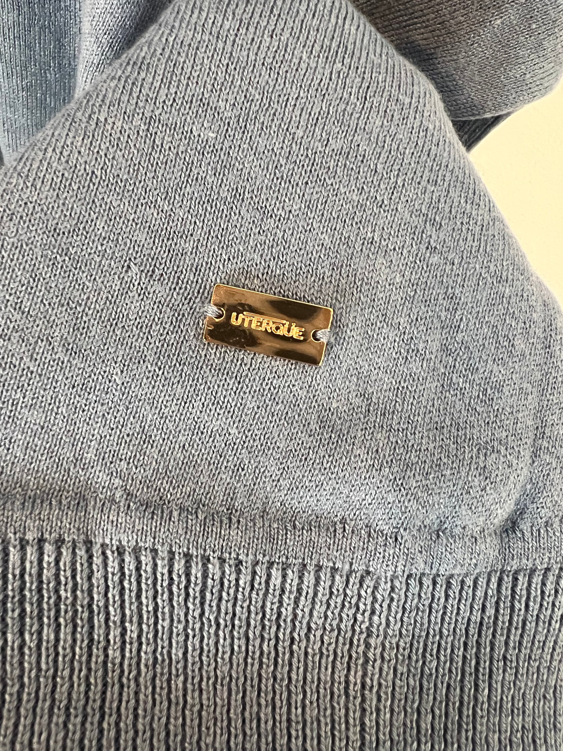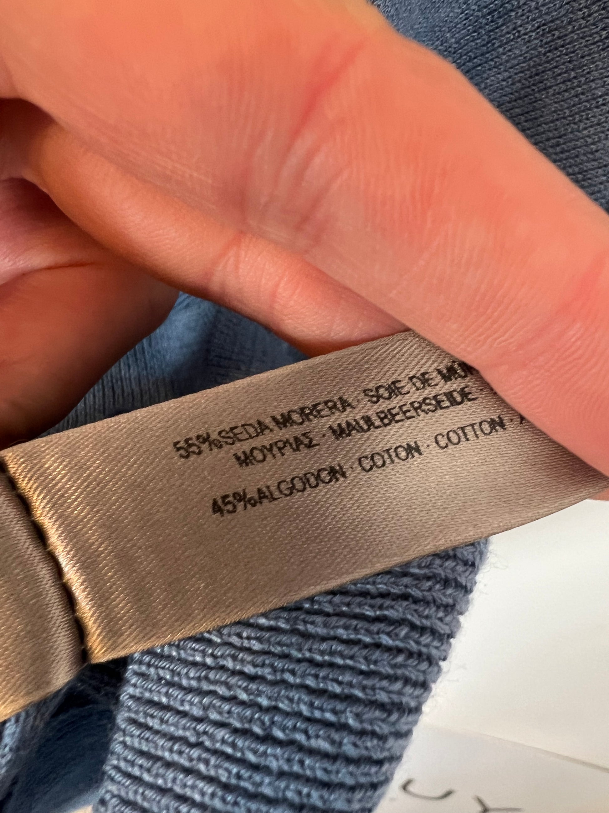 Top azul algodón y seda. Talla como una L. Largo 79 cm. Tara: mini marca en la espalda (foto)