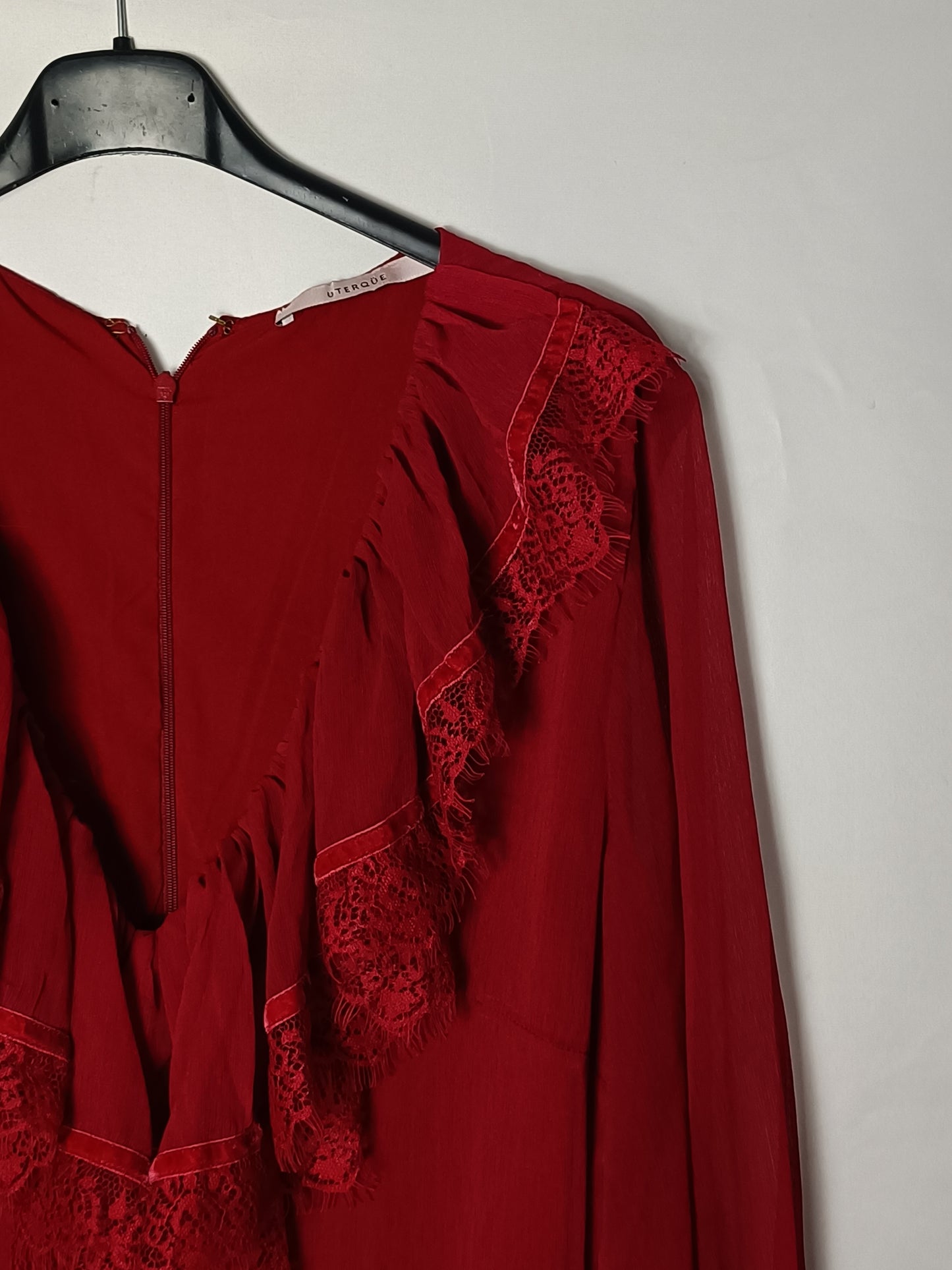 Vestido gasa y encaje rojo. Cremallera en la espalda