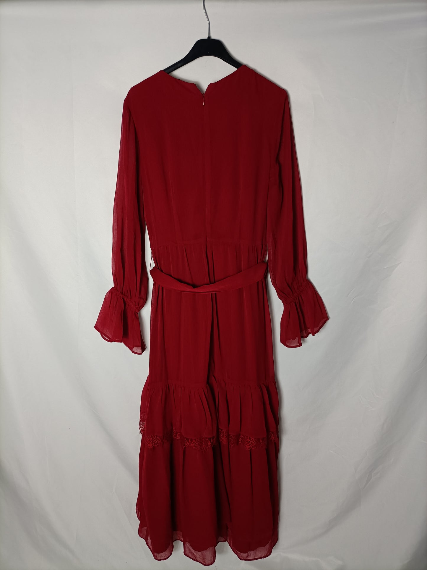 UTERQUE. Vestido gasa y encaje rojo. T S
