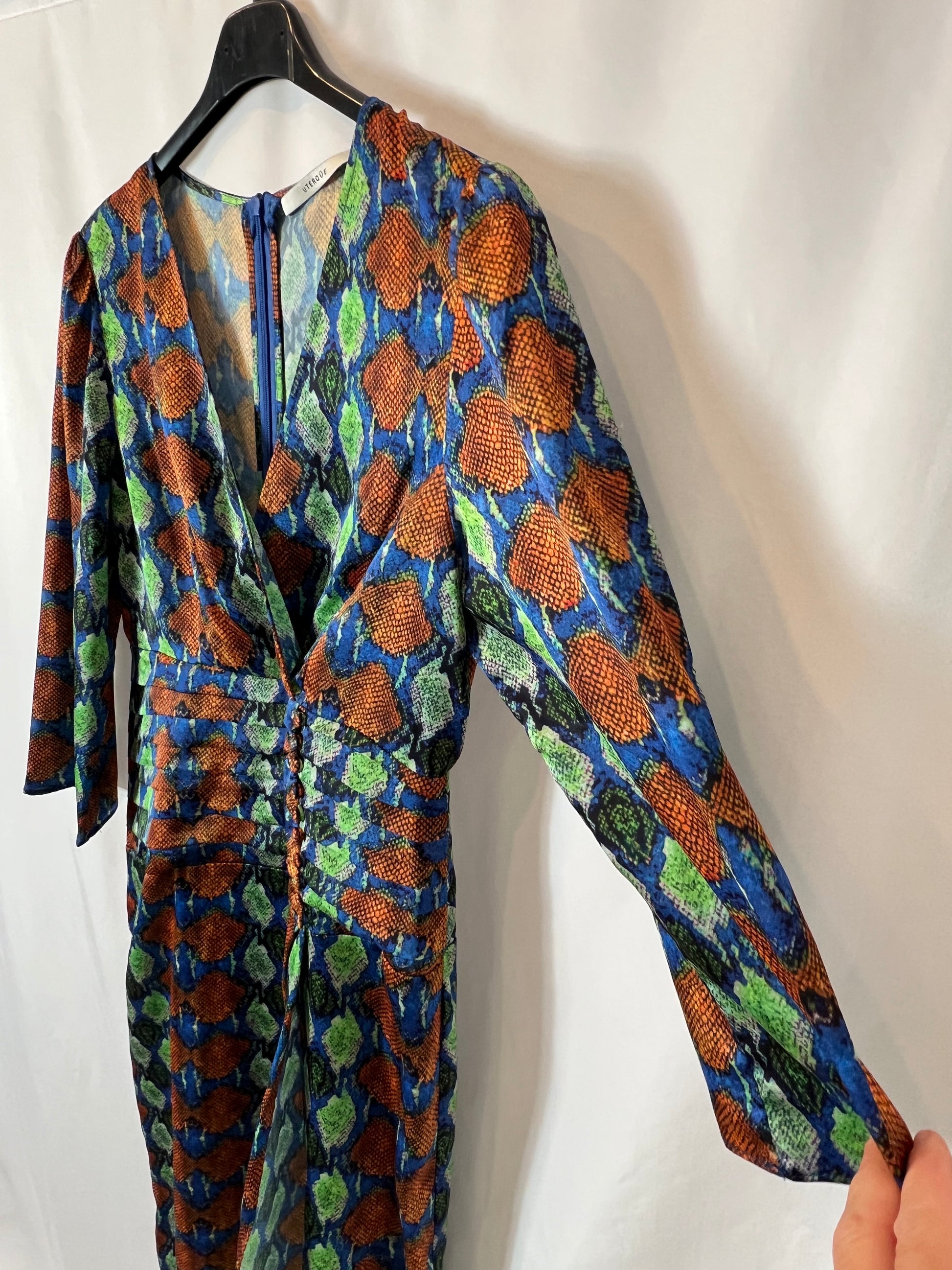 Vestido midi estampado satinado. De sisa a siaa 46cm, largo 119cm