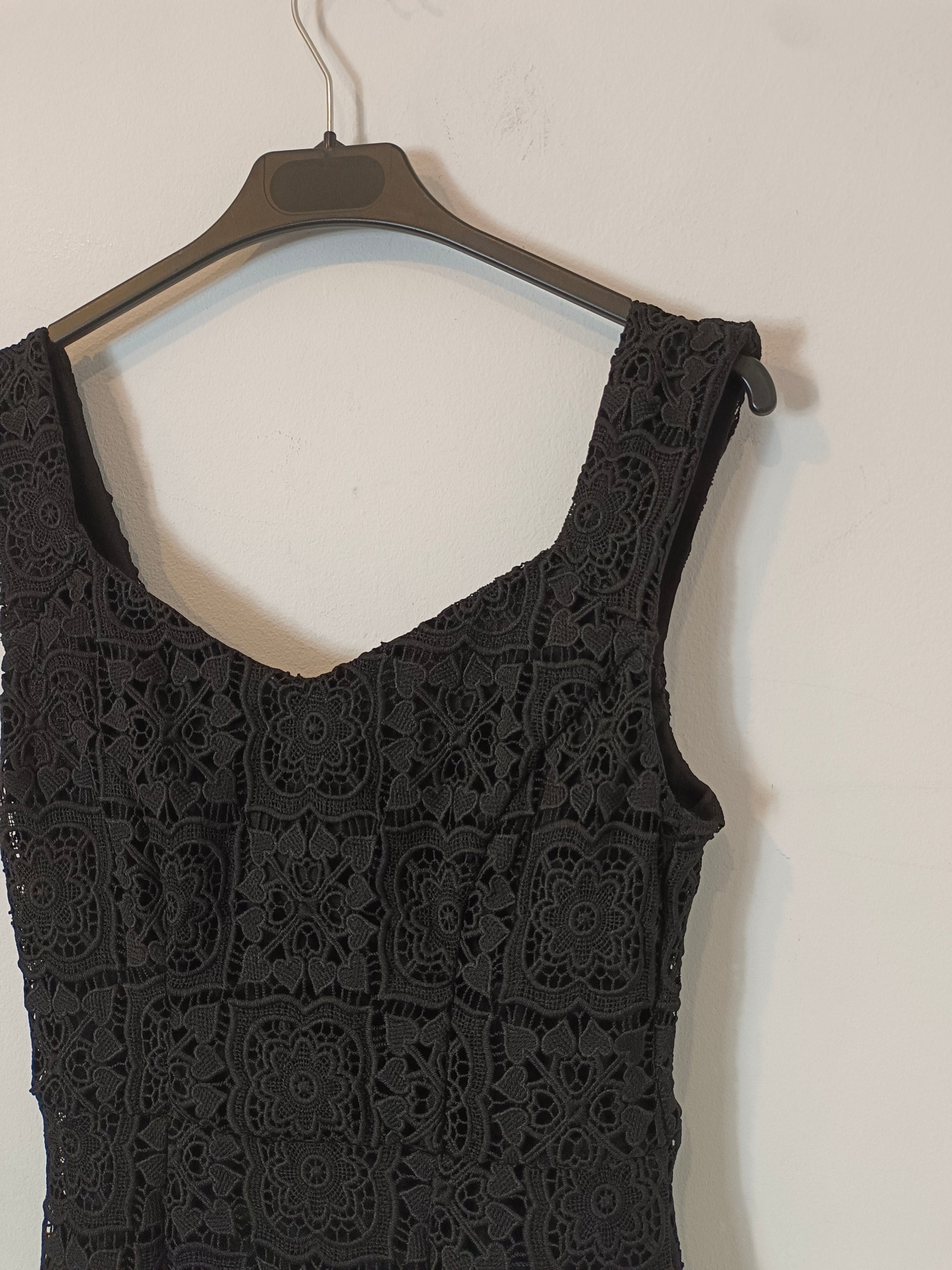 Vestido midi negro troquelado. De sisa a sisa cm ,largo cm. no elástico