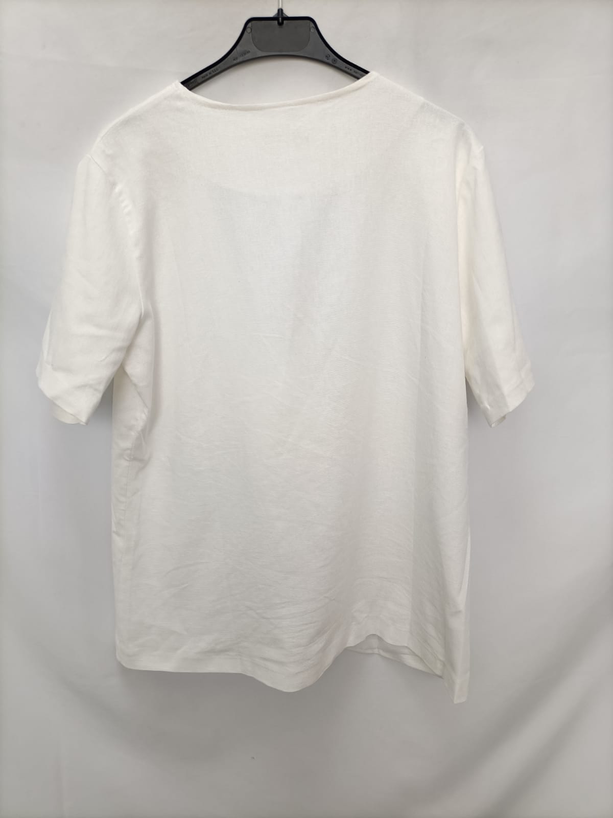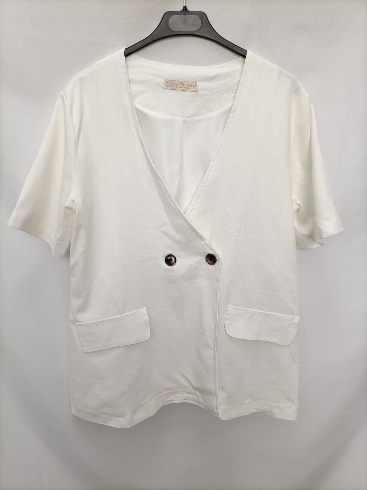 Valentina. Tu (L). Blusón/chaqueta cruzada de lino estilo oversized. No elastica. De sisa a sisa 53 cm largo 67 cm