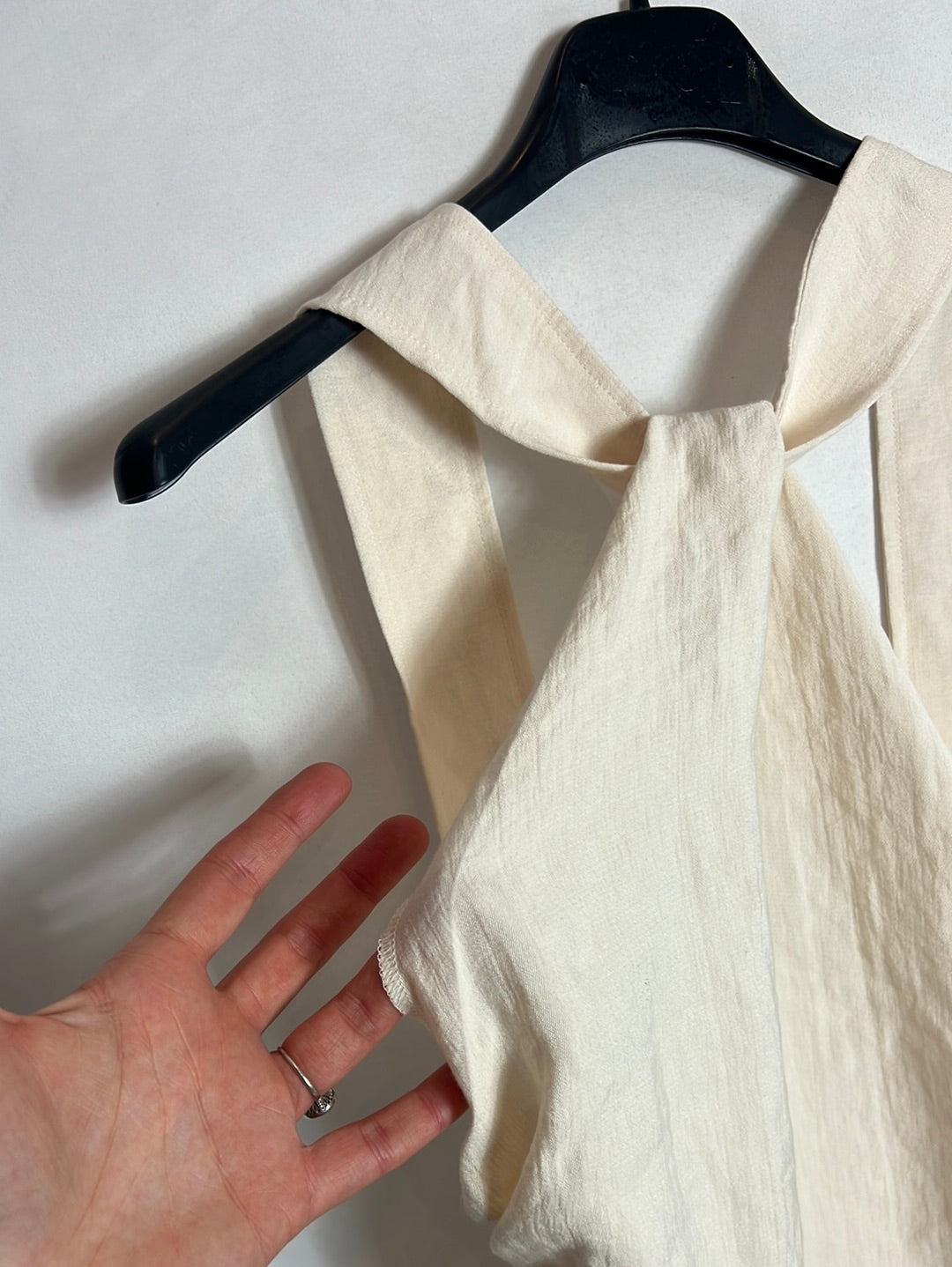 VALENTINA GARÍ. Top textura beige cuello halter. T S