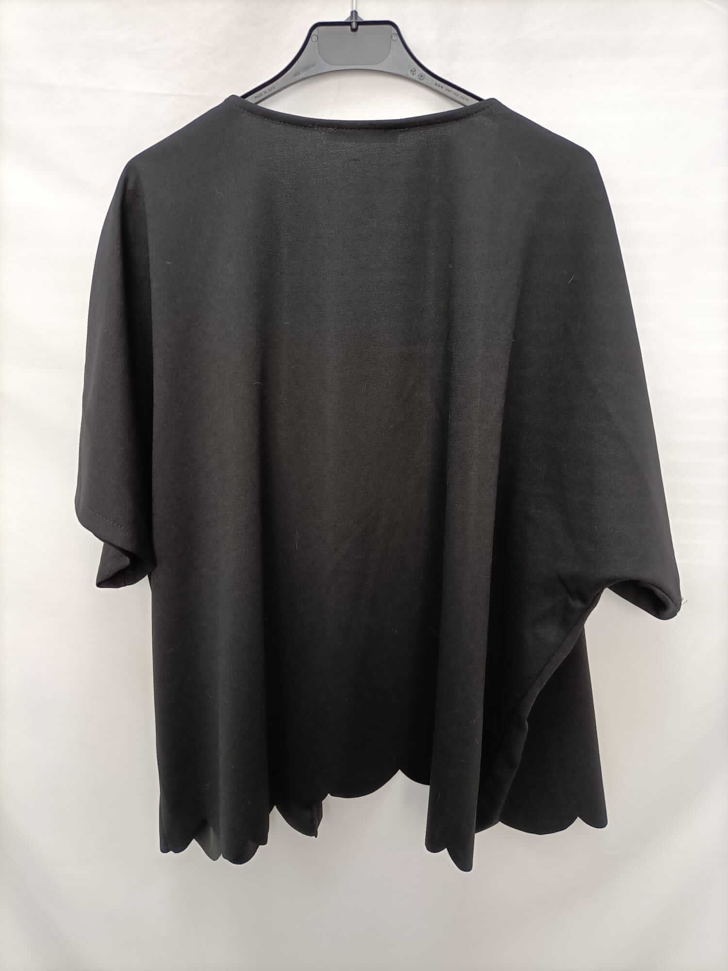 Valentina. Tu (m/L). Kimono negro elástico. No se abrocha. Fluido. Largo 66 cm