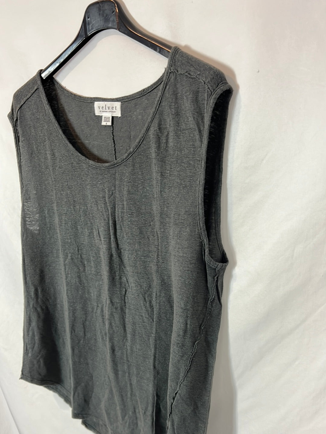 Camiseta gris 100% lino sin mangas. De sisa a sisa 50cm, largo 63cm