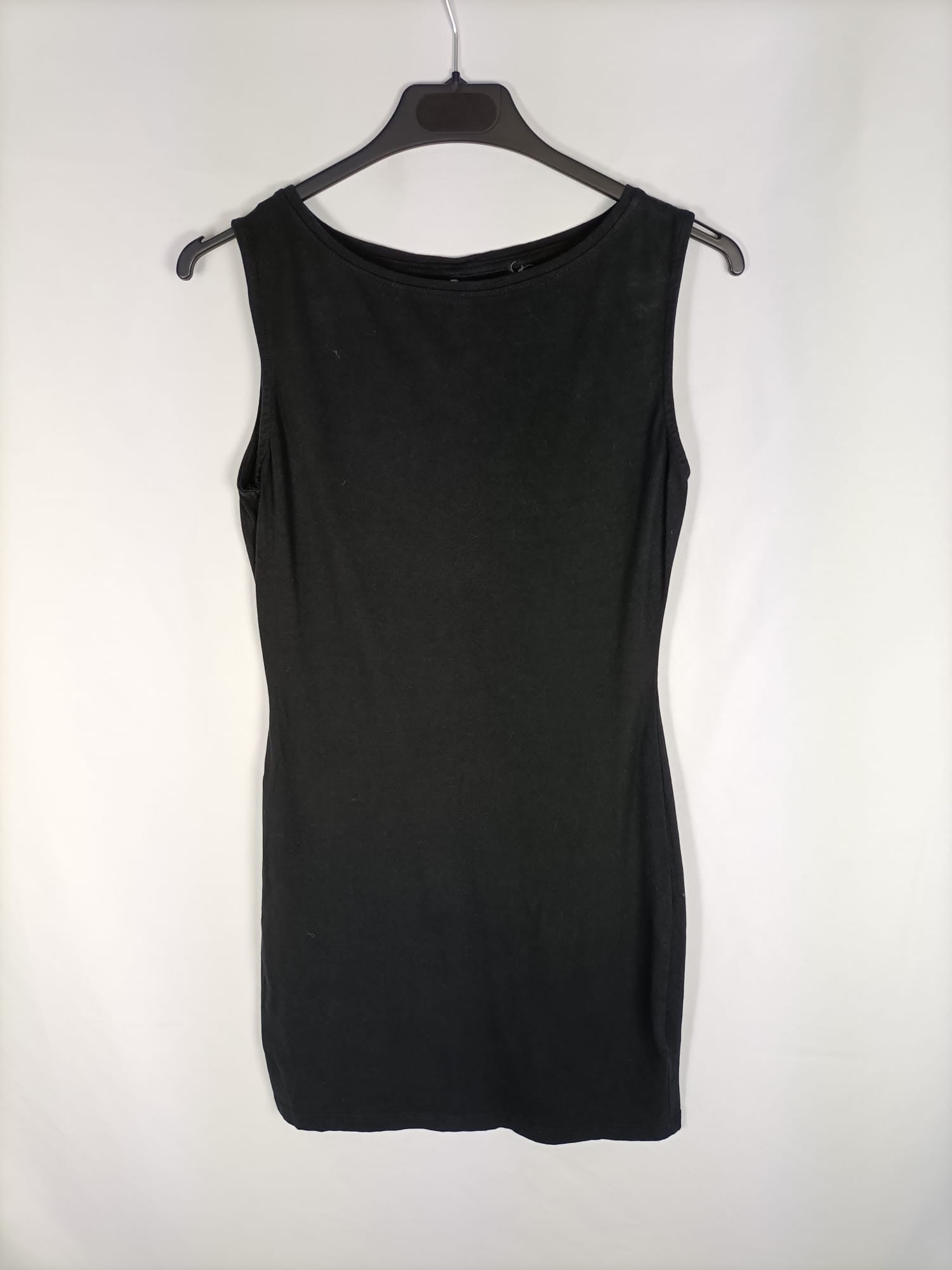 Venca. M. Vestido ajustado y cortito negro. Básico y elástico. Largo 83 cm