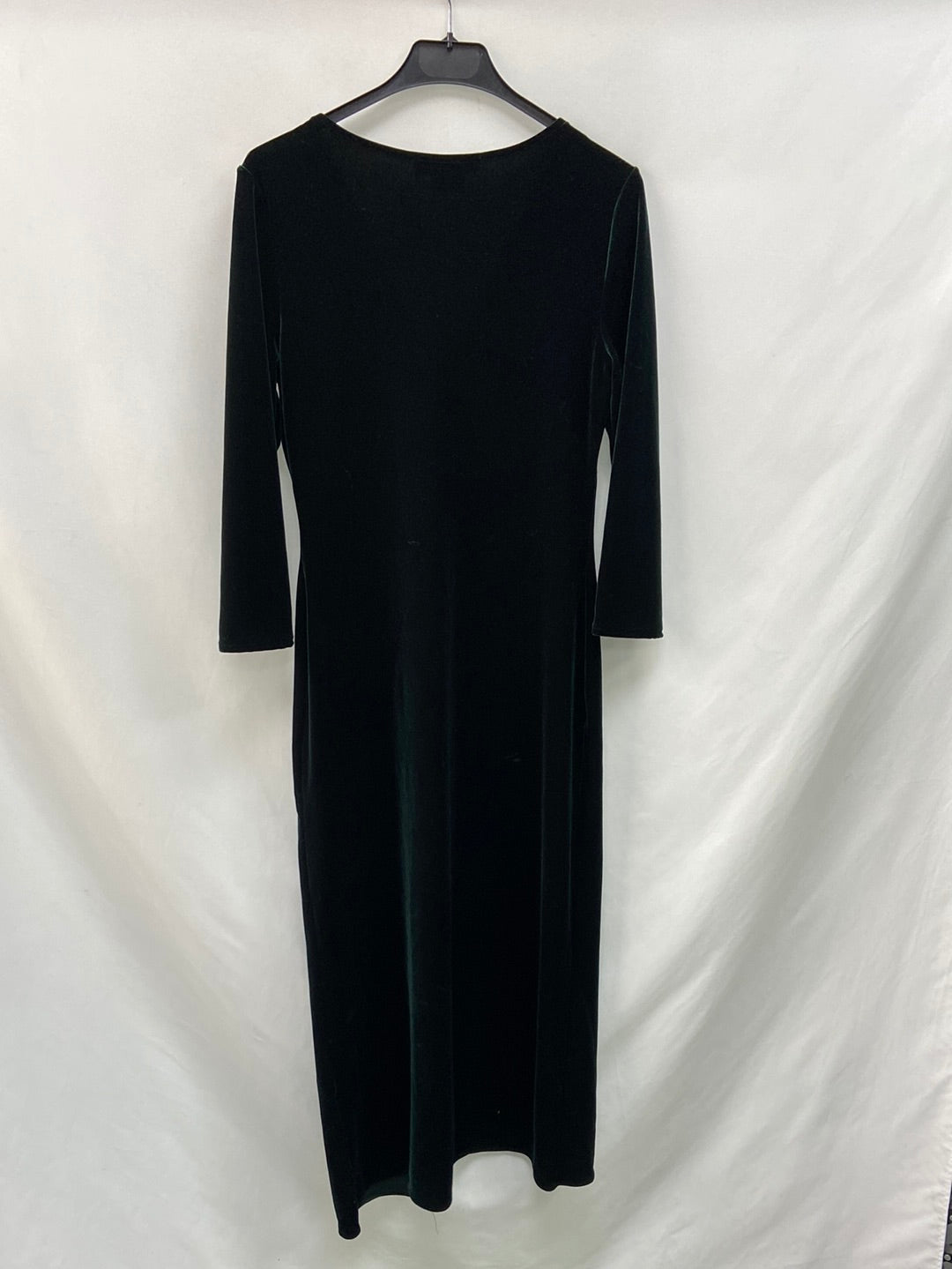 VENENO EN LA PIEL.Vestido largo verde terciopelo T.38