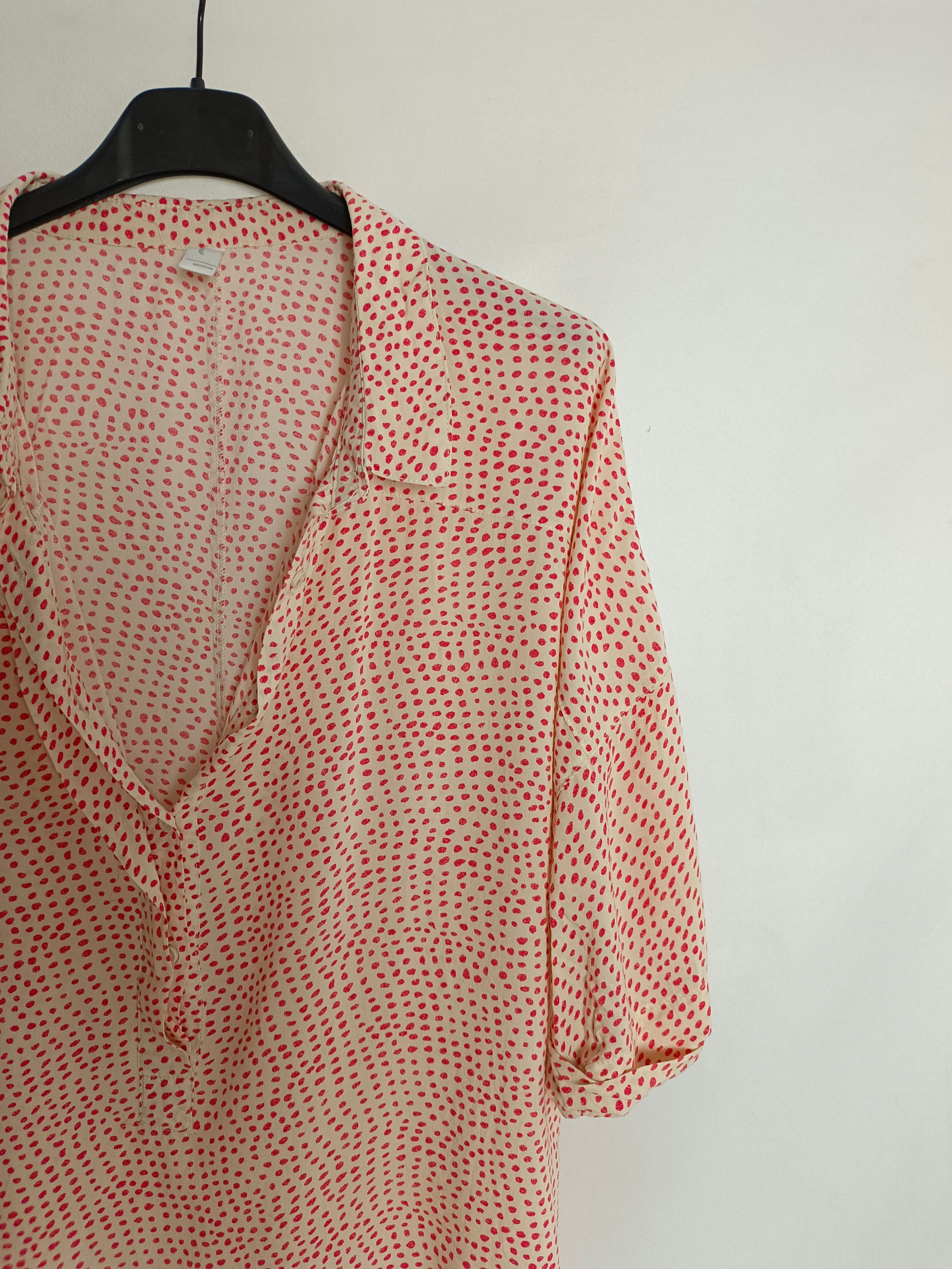 blusa fluida beige con lunares en rojo