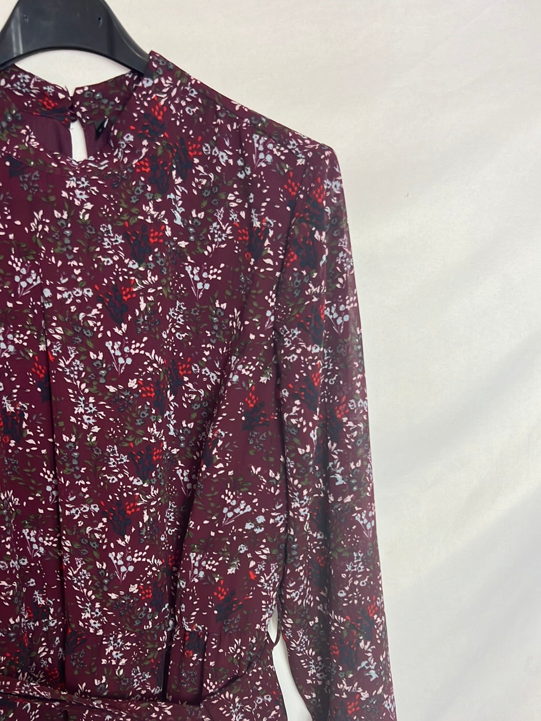 VERO MODA. Vestido burdeos fluido estampado. T M
