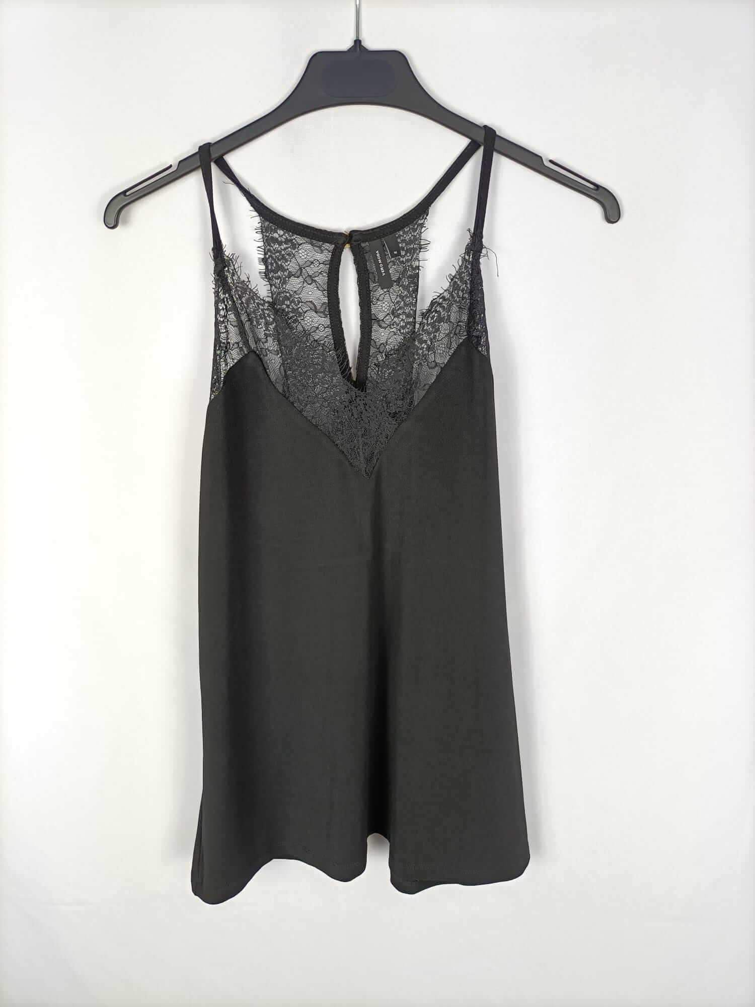 Vero moda. M. Top negro lencero con detalle de encaje. Elástico y fluido. Largo 63 cm