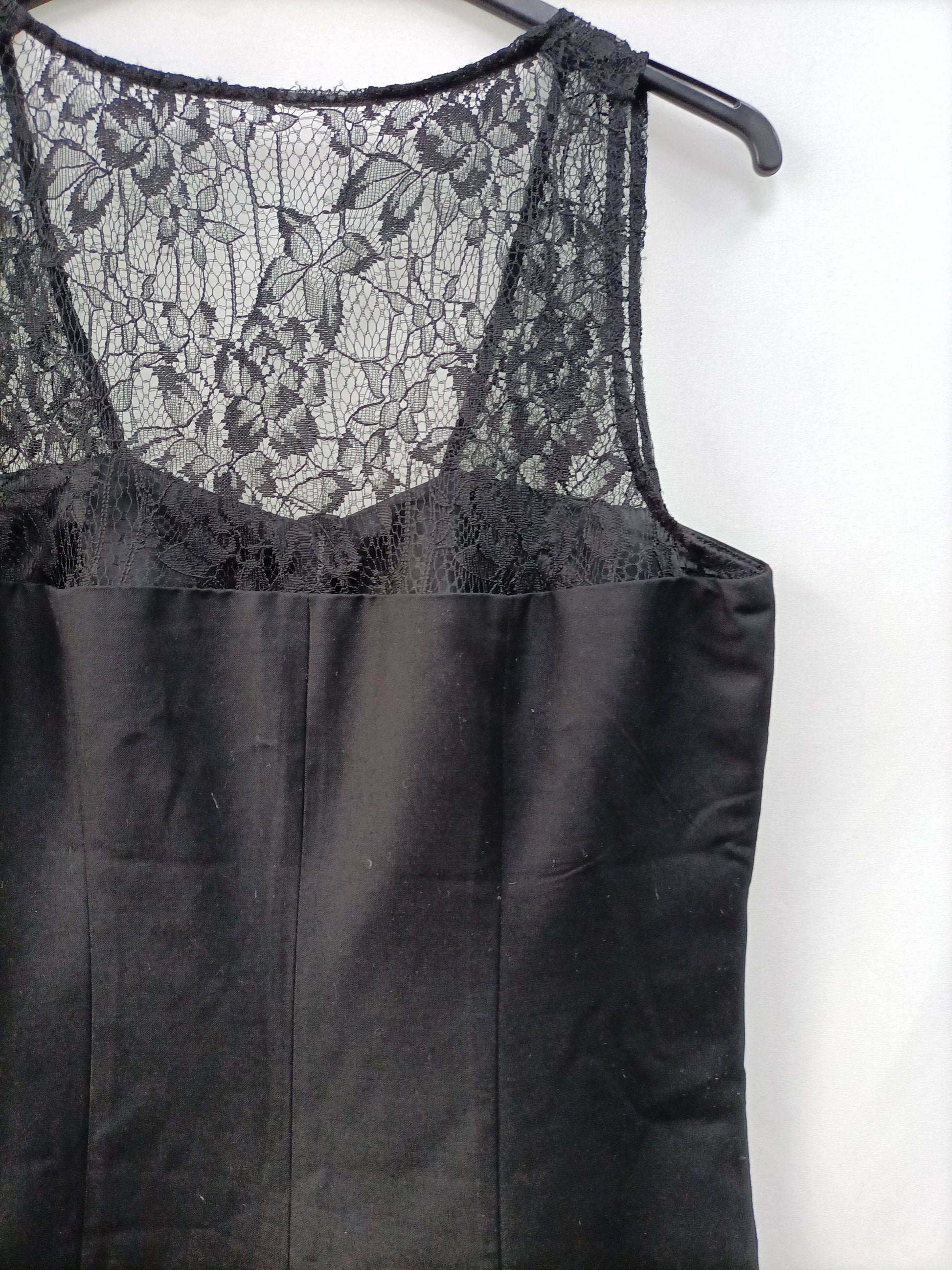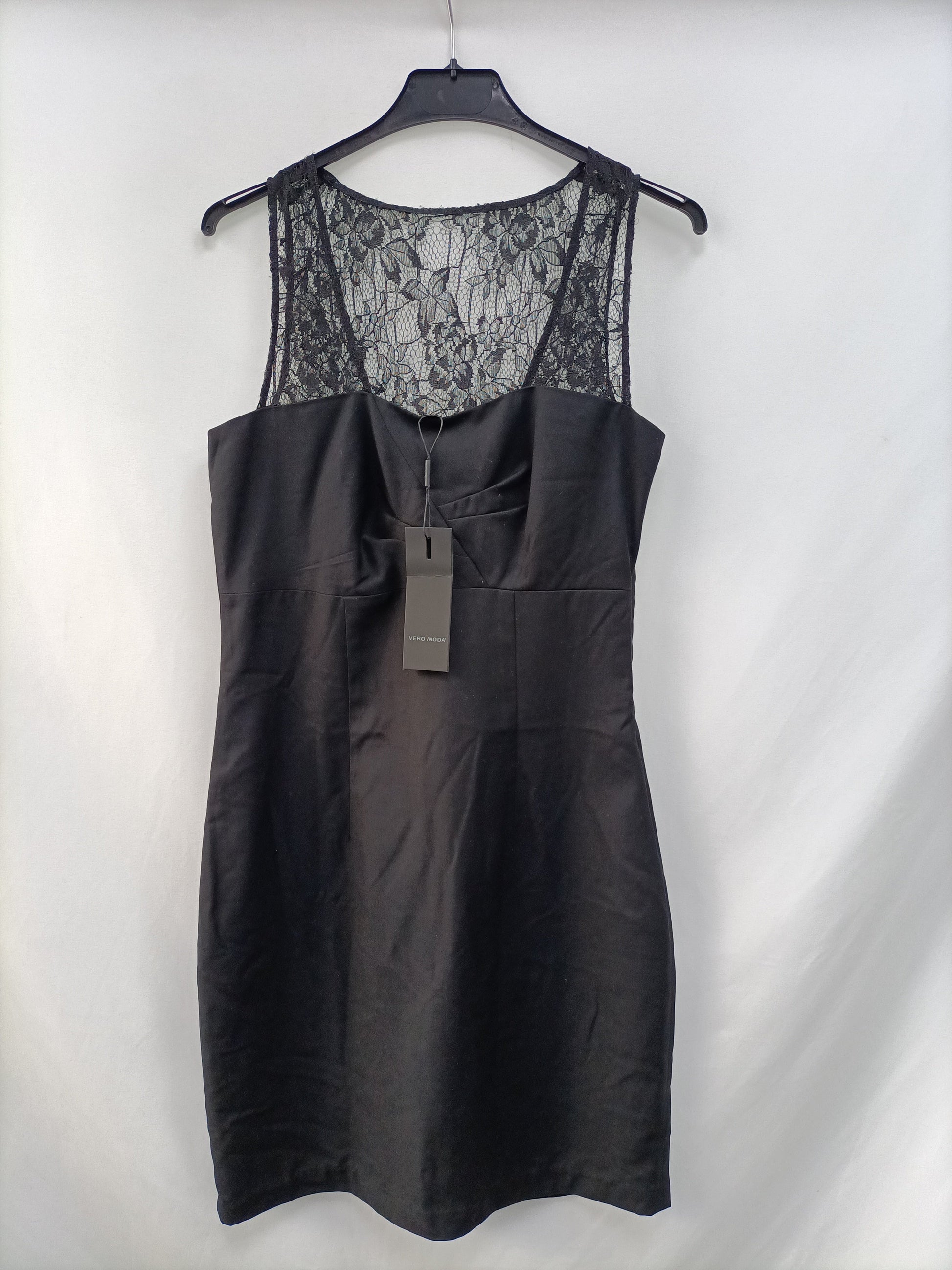 NUEVO CON ETIQUETA. vestido corto negro con encaje en los hombros. de sisa sisa 38 cm largo 91 cm