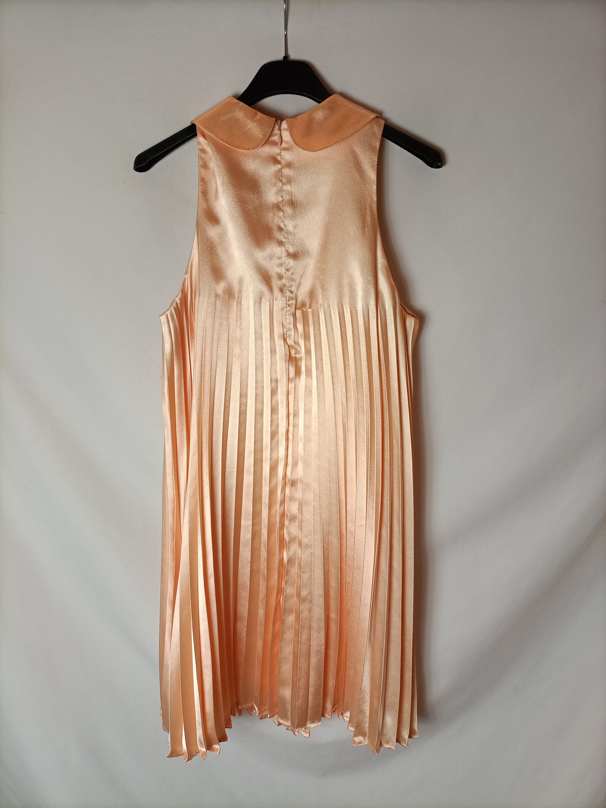 VERSUS VERSACE. Vestido plisado satinado. T 38